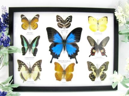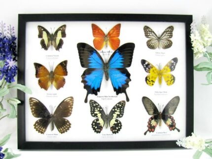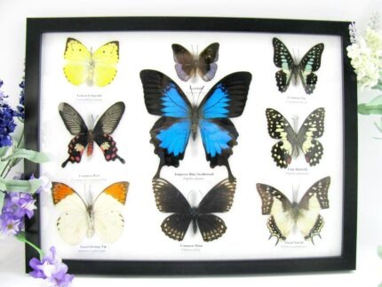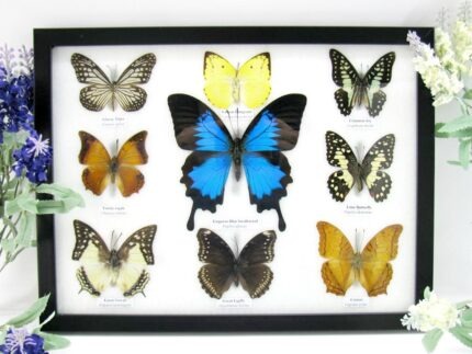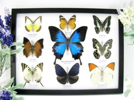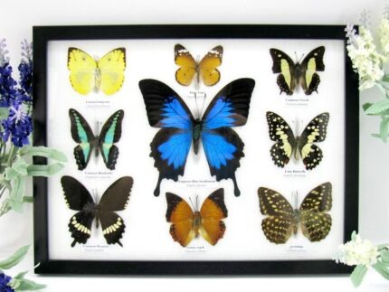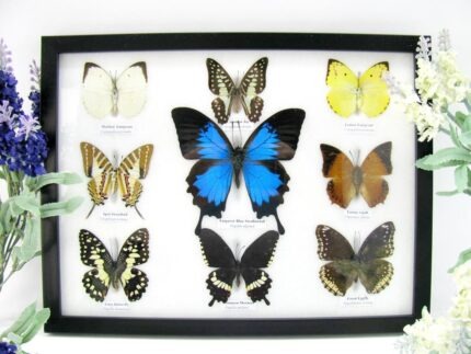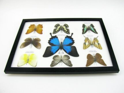 Wunderschöne Schmetterlingssammlung im Bilderrahmen mit 9 echten Schmetterlingen – A-09-ulysses-01