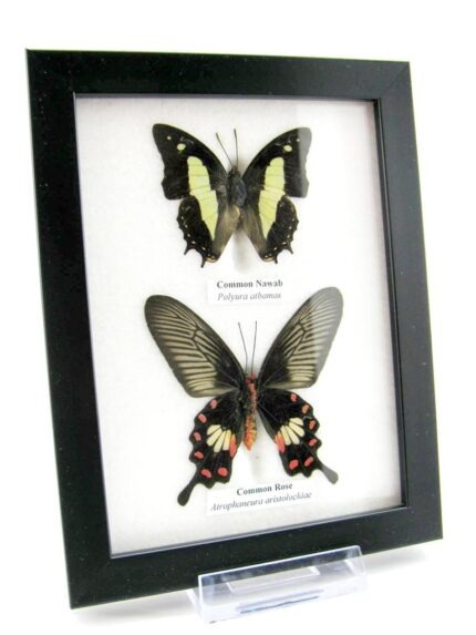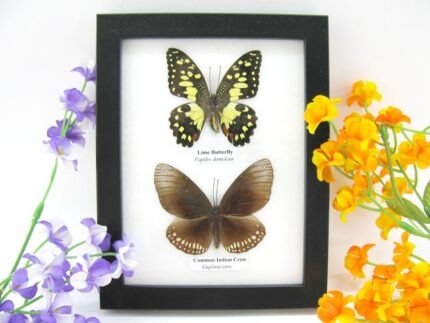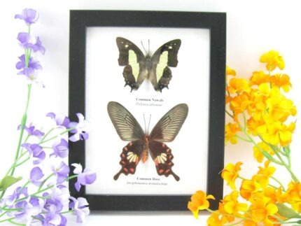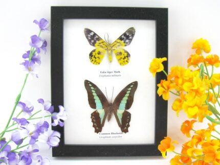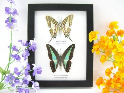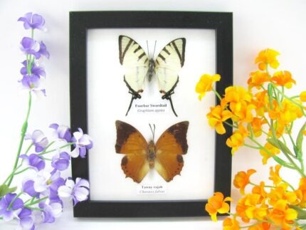 2 wunderschöne echte Schmetterlinge im Rahmen als Wandbild – A-02-h-01