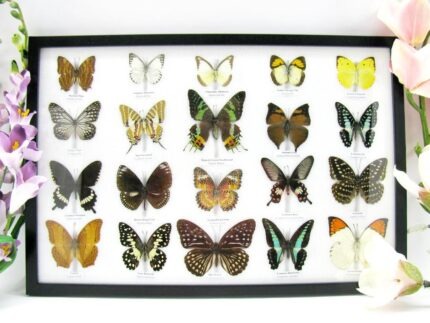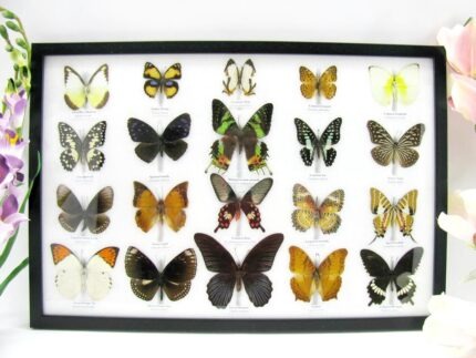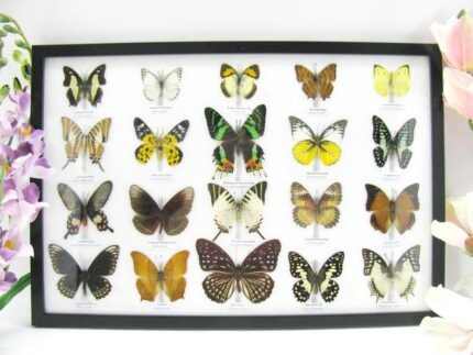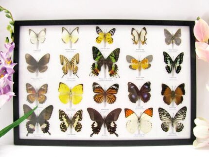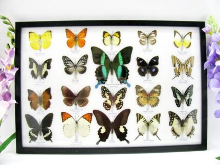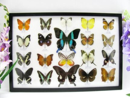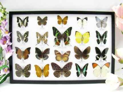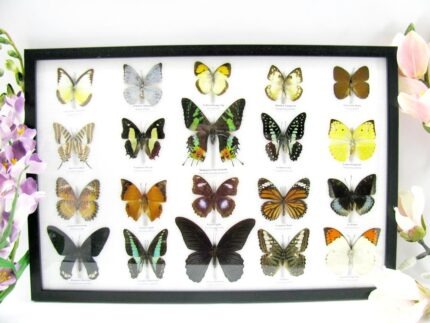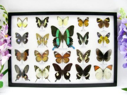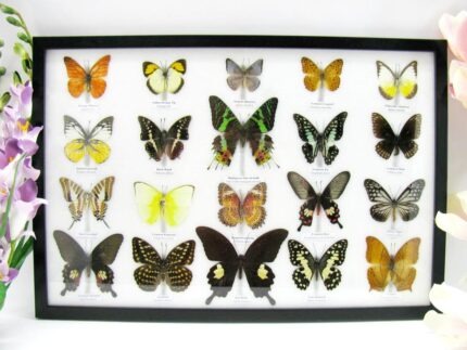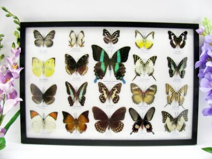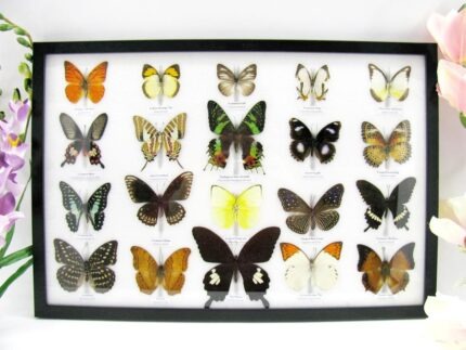 20 wunderschöne echte Schmetterlinge im schwarzen Rahmen als Wandbild – A-01-blumei-08