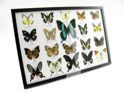 20 wunderschöne echte Schmetterlinge im schwarzen Rahmen als Wandbild – A-01-blumei-02