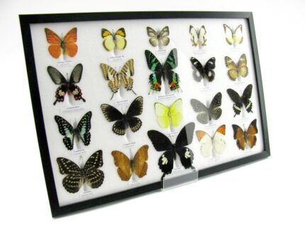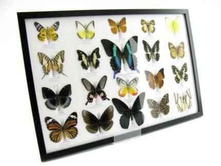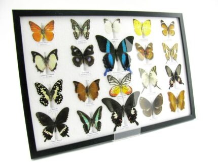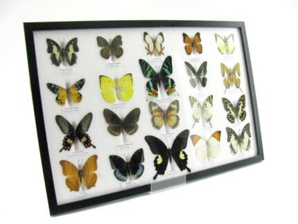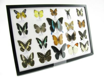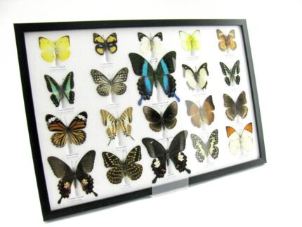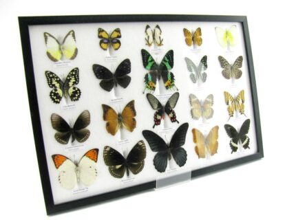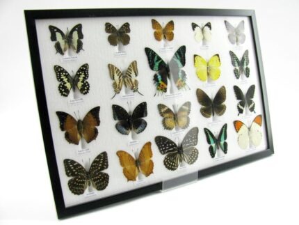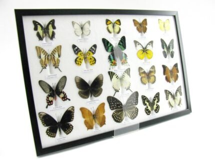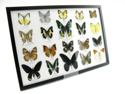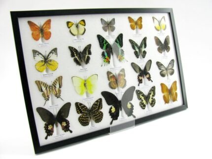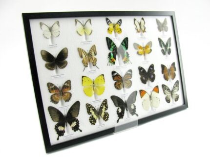 20 wunderschöne echte Schmetterlinge im schwarzen Rahmen als Wandbild – A-20-madam-17