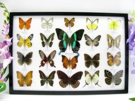 20 wunderschöne echte Schmetterlinge im schwarzen Rahmen als Wandbild – A-20-blumei-04