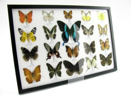 20 wunderschöne echte Schmetterlinge im schwarzen Rahmen als Wandbild – A-01-blumei-05