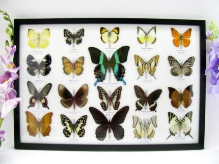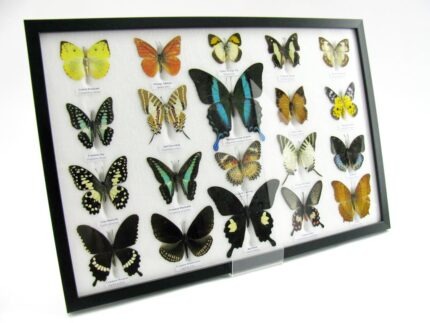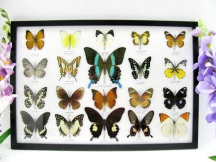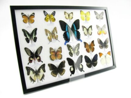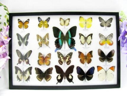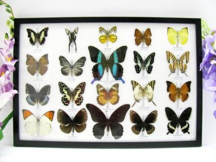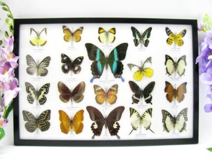 20 wunderschöne echte Schmetterlinge im schwarzen Rahmen als Wandbild – A-20-blumei-18