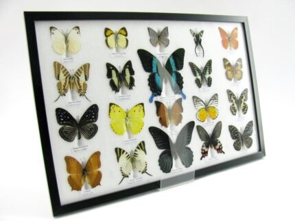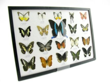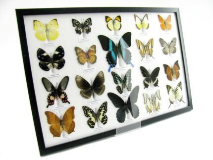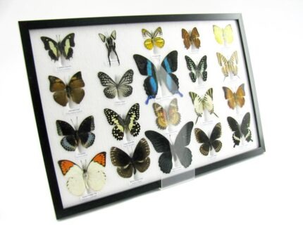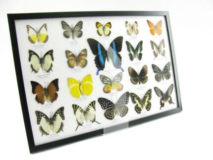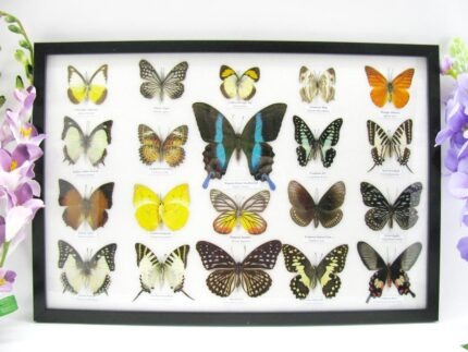 20 wunderschöne echte Schmetterlinge im schwarzen Rahmen als Wandbild – A-01-blumei-13