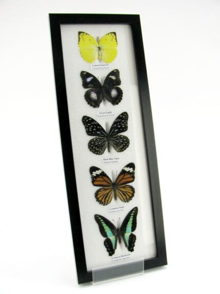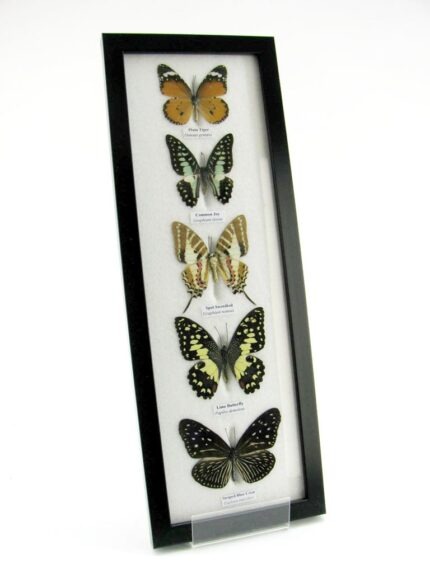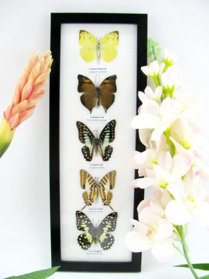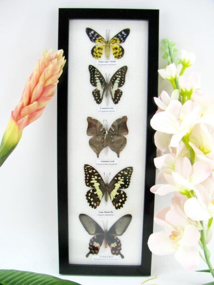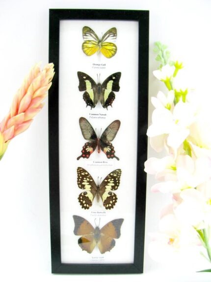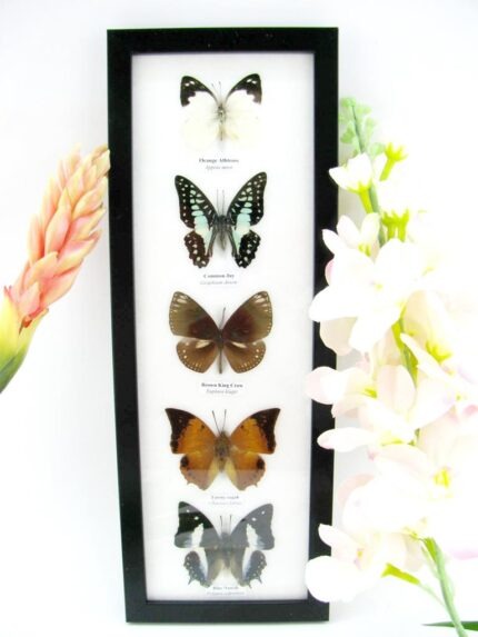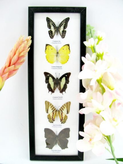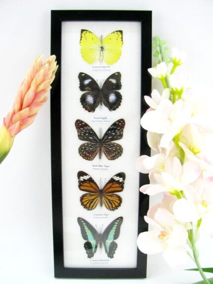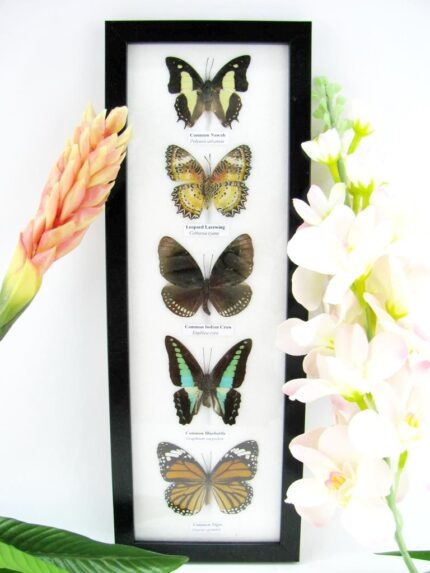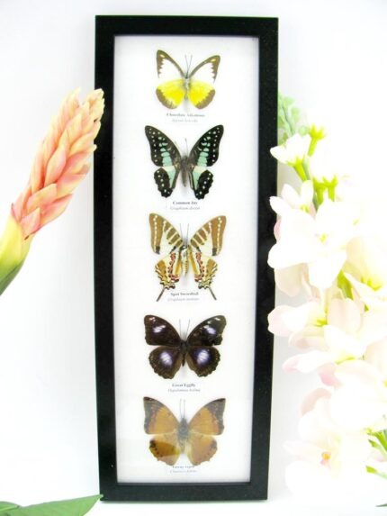5 wunderschöne echte Schmetterlinge im Rahmen als Wandbild – A-05-h-16