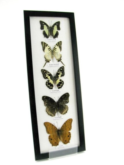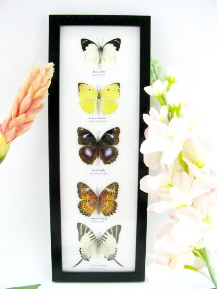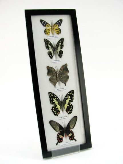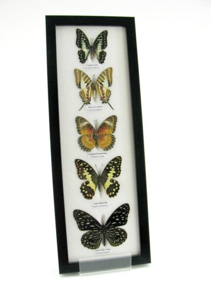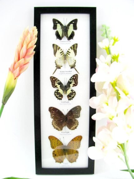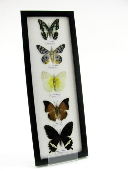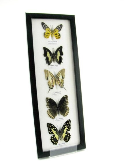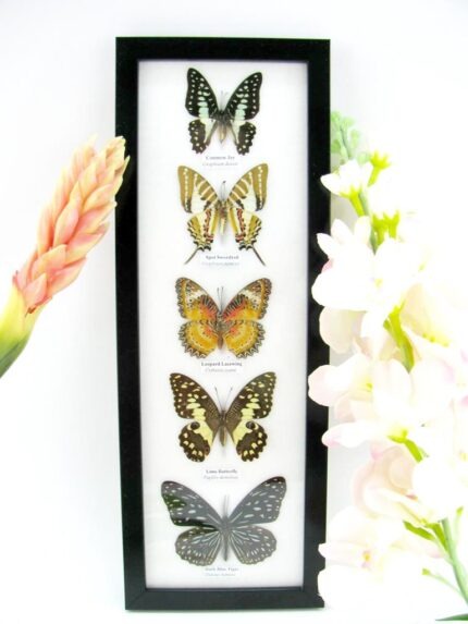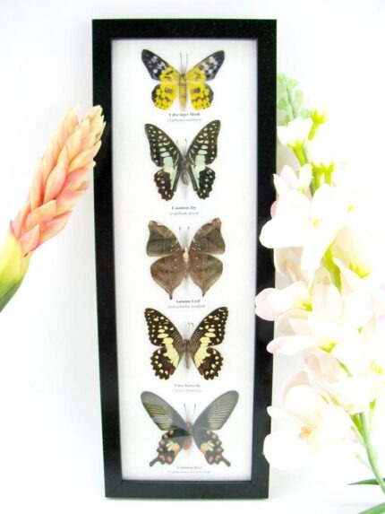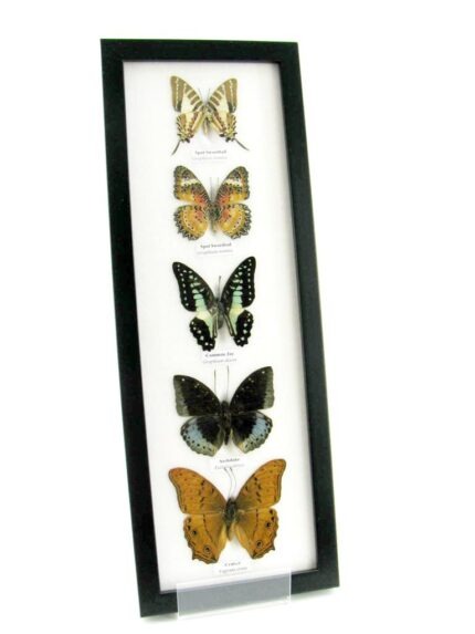5 wunderschöne echte Schmetterlinge im Rahmen als Wandbild – A-05-h-01