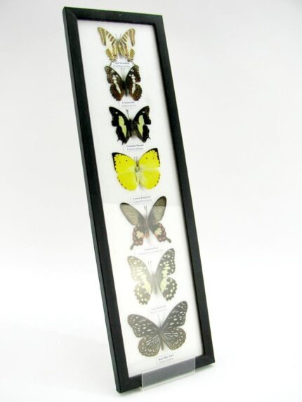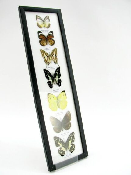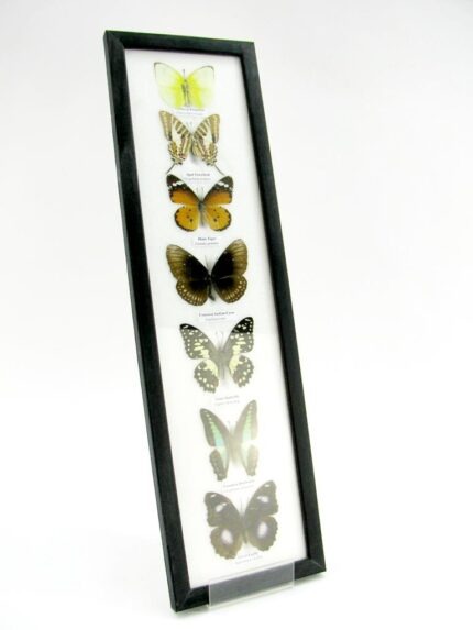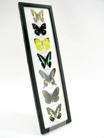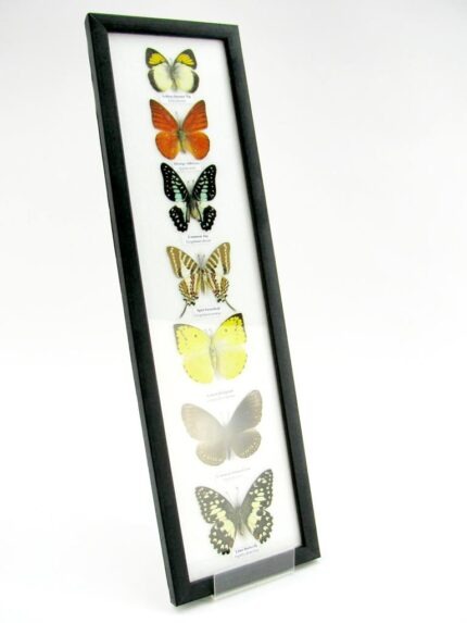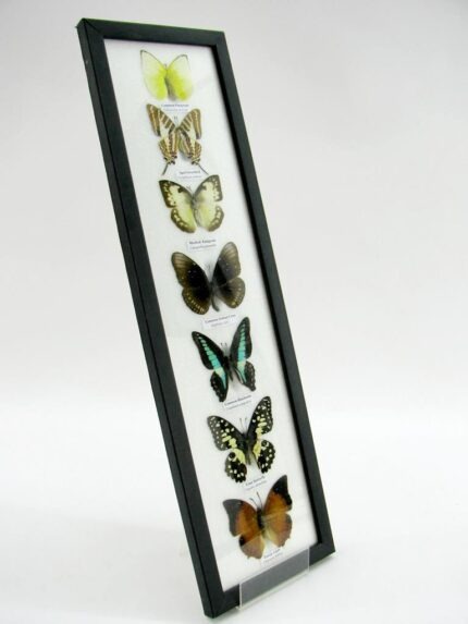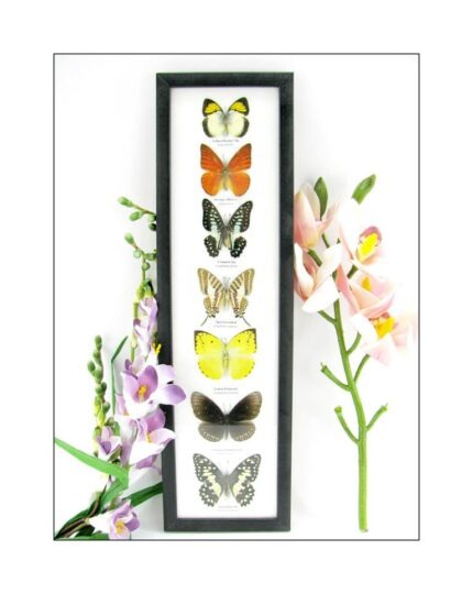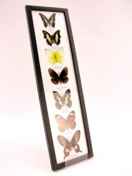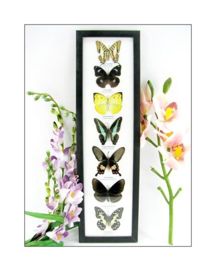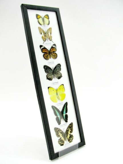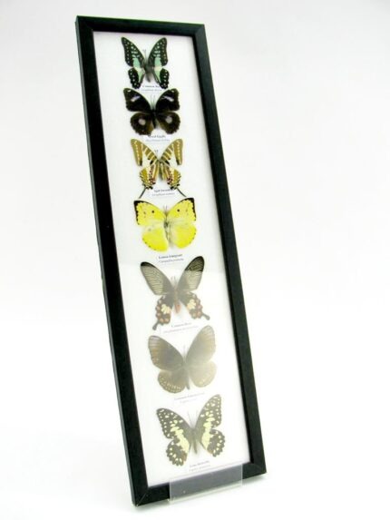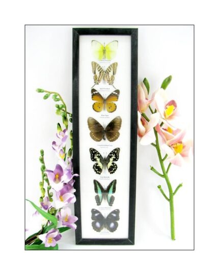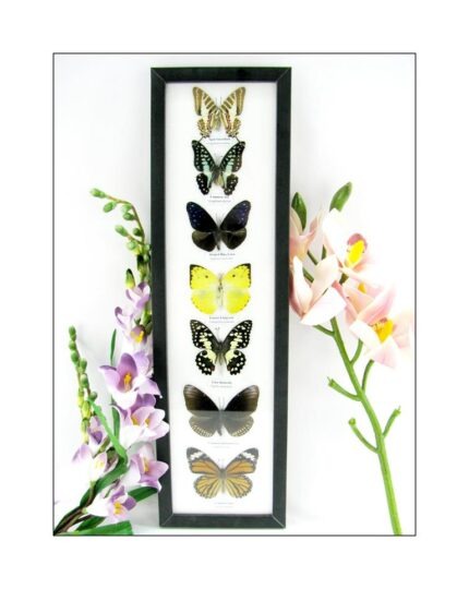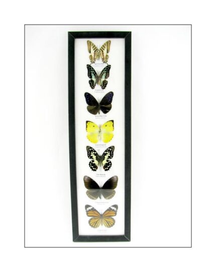 7 wunderschöne echte Schmetterlinge im schwarzen Rahmen als Wandbild – A-07-h-07