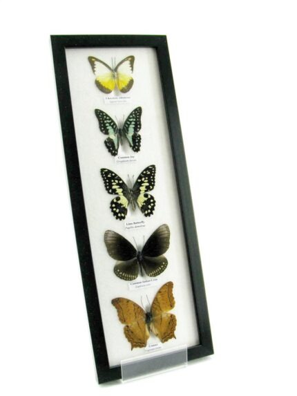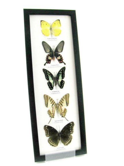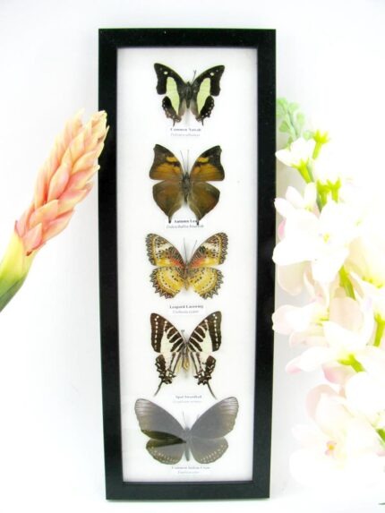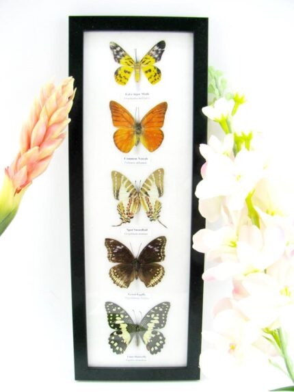 5 wunderschöne echte Schmetterlinge im Rahmen als Wandbild – A-05-h-25