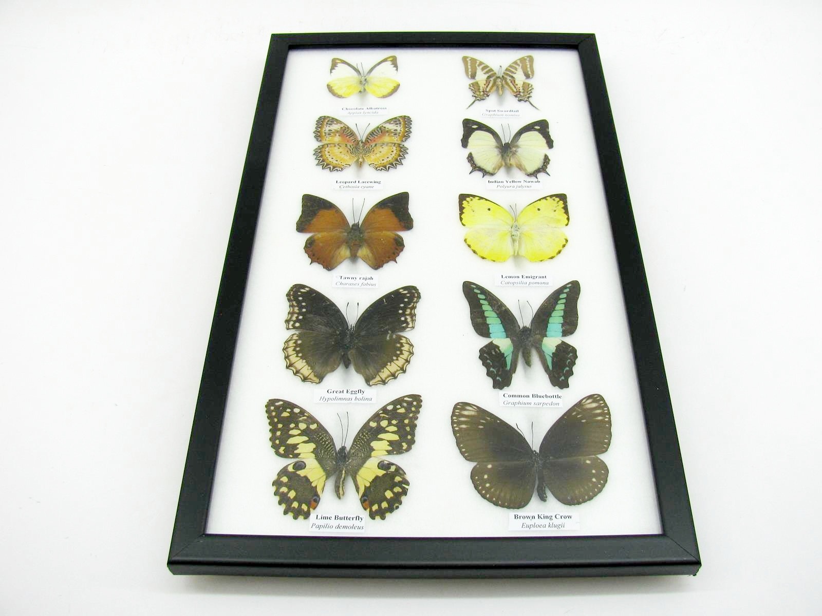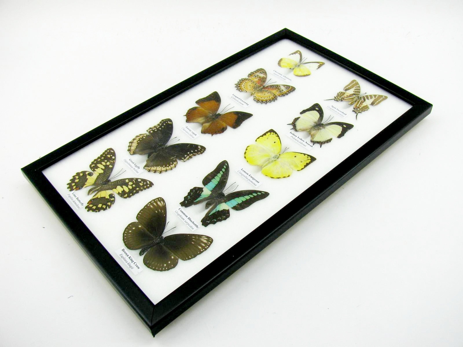 10 wunderschöne echte Schmetterlinge im Rahmen als Wandbild – A-10-h-10