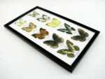 Startseite Schmetterlinge Schmetterlinge auf Watte Set mit 10 bis 15 Schmetterlingen 10 wunderschöne echte Schmetterlinge im Rahmen als Wandbild – A-10-h-05
