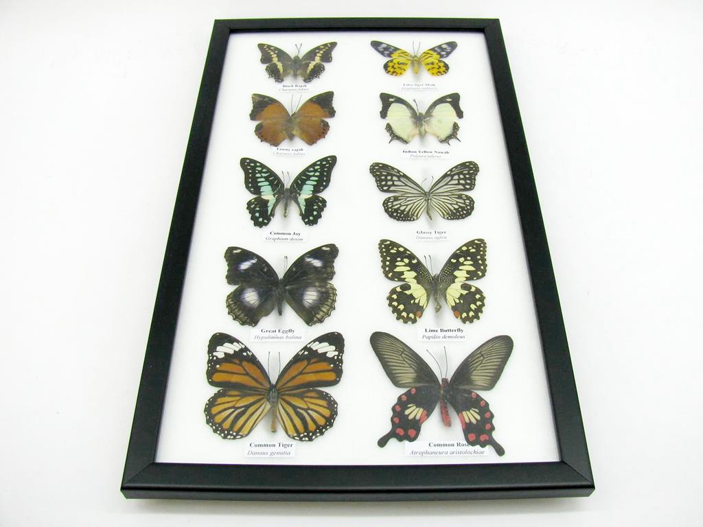 10 wunderschöne echte Schmetterlinge im Rahmen als Wandbild – A-10-h-01