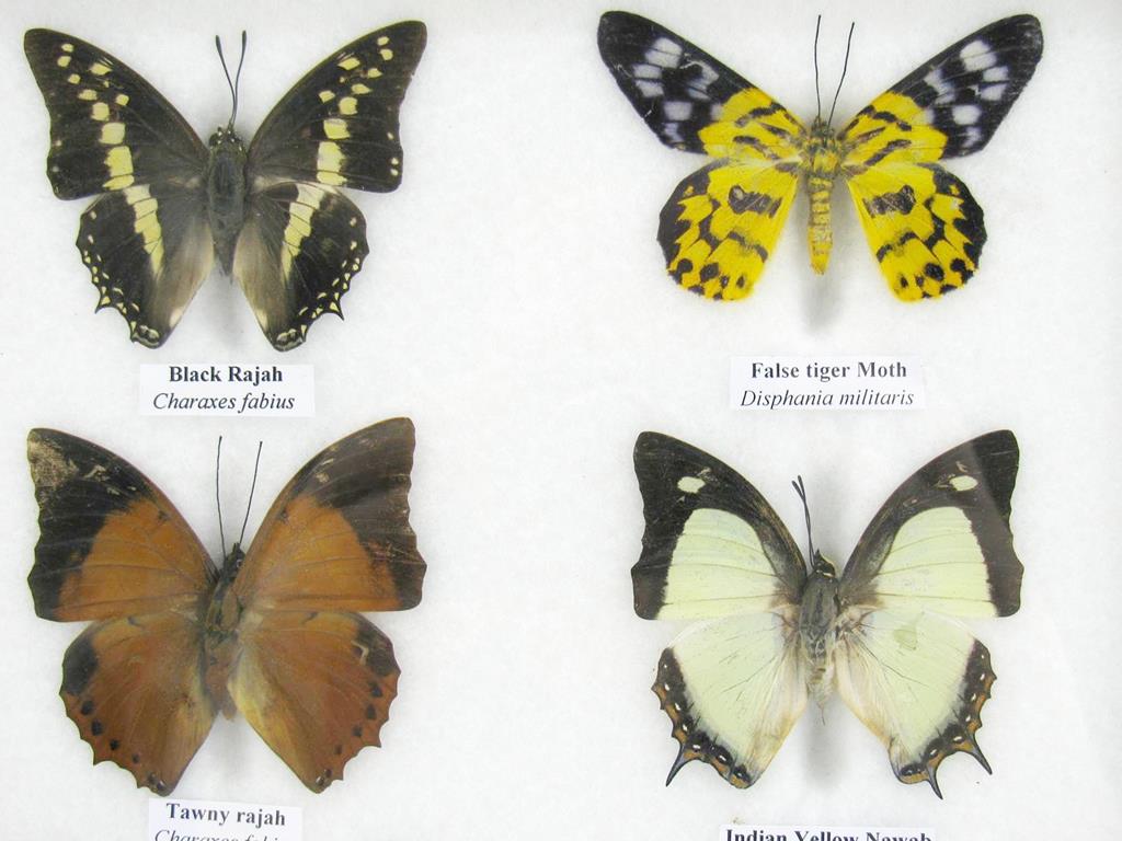• Schmetterlinge in der Vitrine auf Watte
