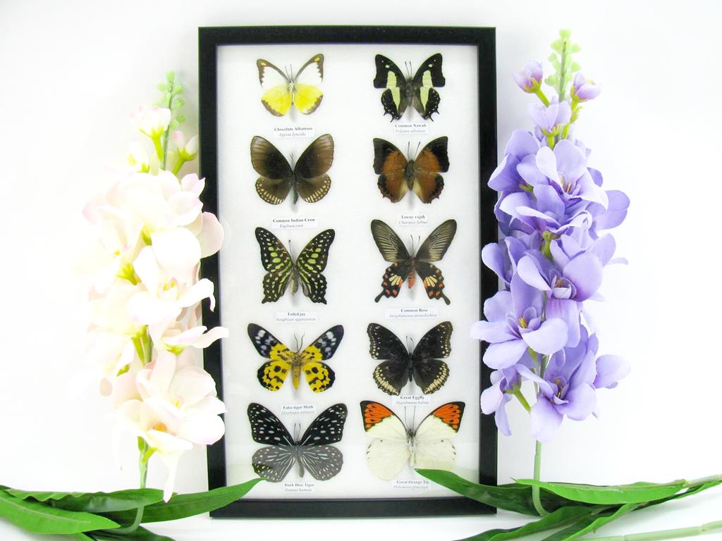 10 wunderschöne echte Schmetterlinge im Rahmen als Wandbild - A-10-h-10