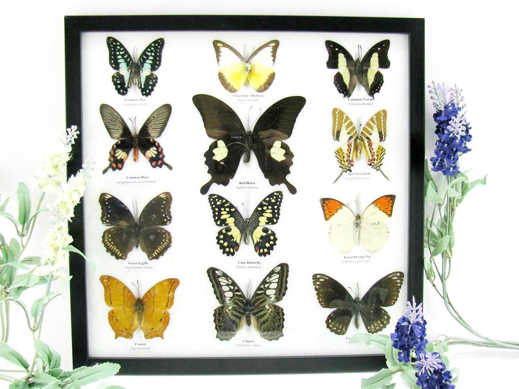 12 wunderschöne echte Schmetterlinge im Rahmen als Wandbild – A-12-helen-05