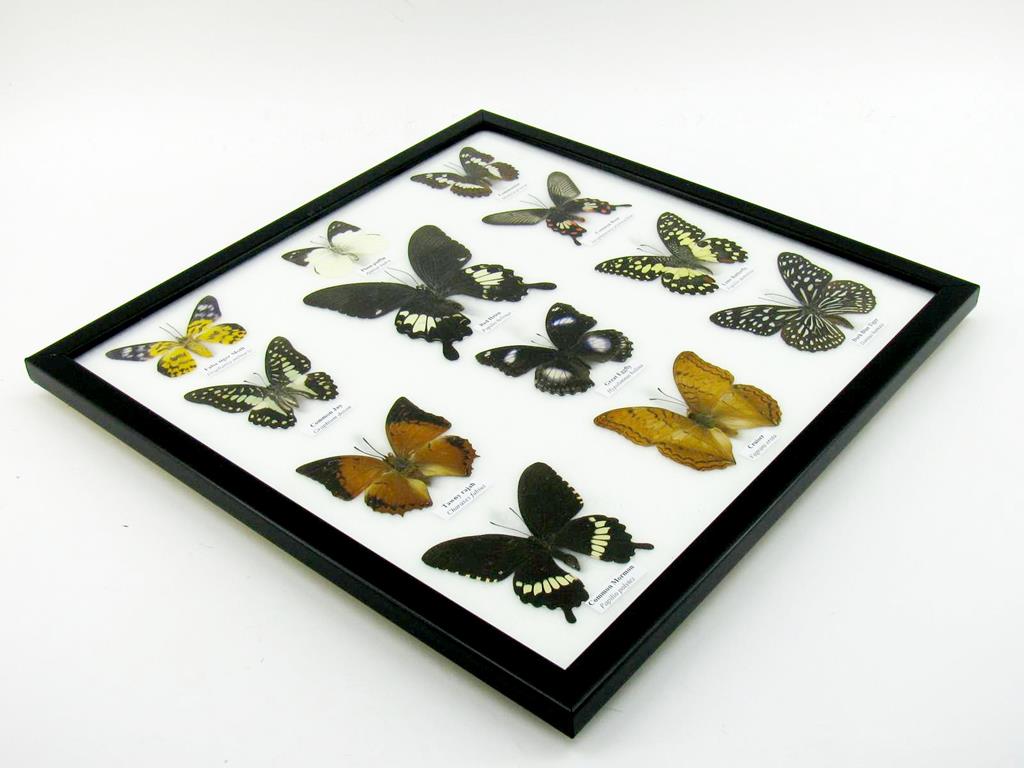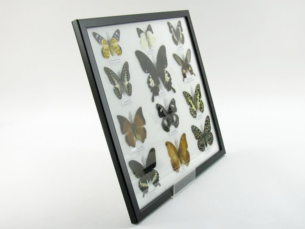 Startseite Schmetterlinge Schmetterlinge auf Watte Set mit 10 bis 15 Schmetterlingen 12 wunderschöne echte Schmetterlinge im Rahmen als Wandbild – A-12-helen-10