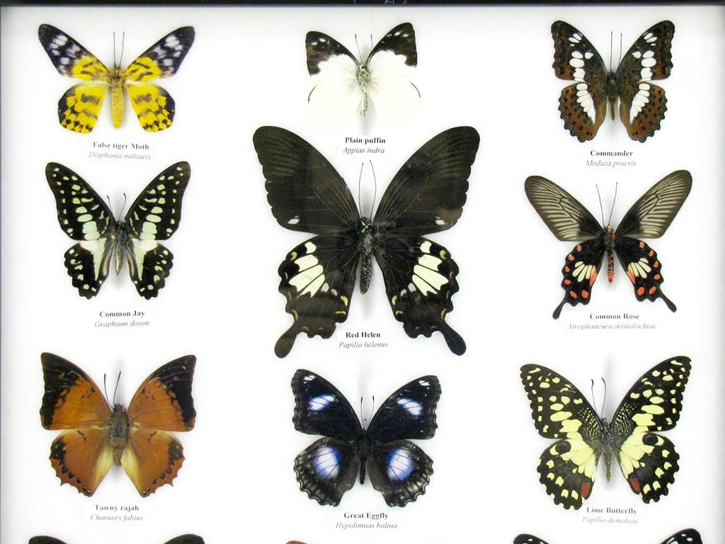 Wunderschöne, echte, präparierte Schmetterlinge als Wandbild im Schaukasten in perfekter Museumsqualität kaufen Sie hier