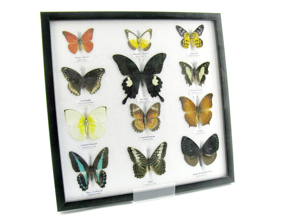12 wunderschöne und natürlich echte Schmetterlinge aus nachhaltiger Zucht im XL Schaukasten