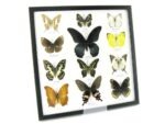 12 wunderschöne echte Schmetterlinge im schwarzen Rahmen als Wandbild – A-12-mor-03