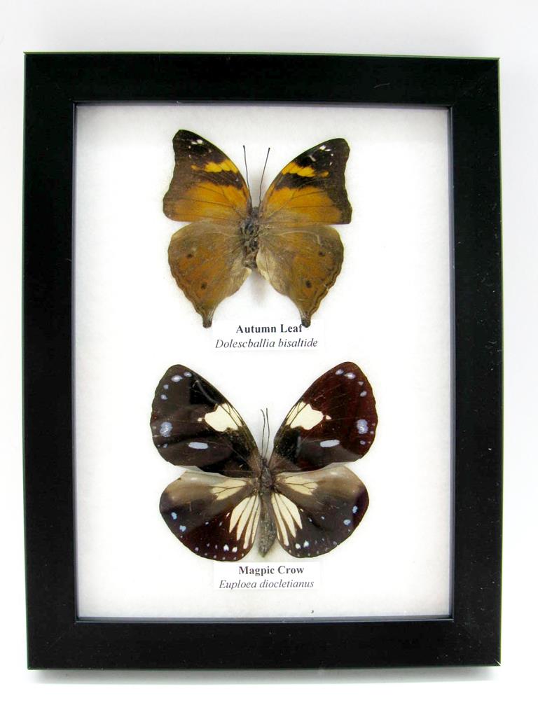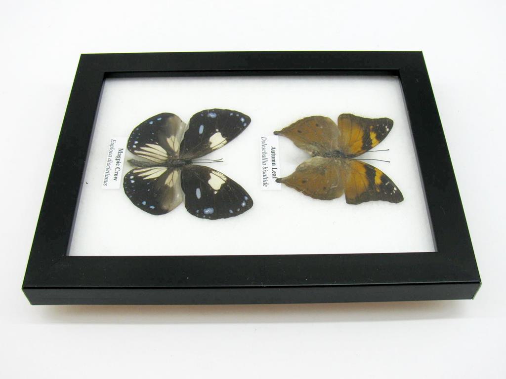 2 wunderschöne echte Schmetterlinge im Rahmen als Wandbild – A-02-h-01