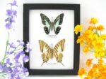2 wunderschöne echte Schmetterlinge im Rahmen als Wandbild – A-02-h-02
