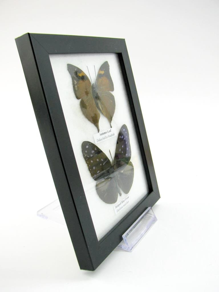 2 wunderschöne echte Schmetterlinge im Rahmen als Wandbild – A-02-h-03