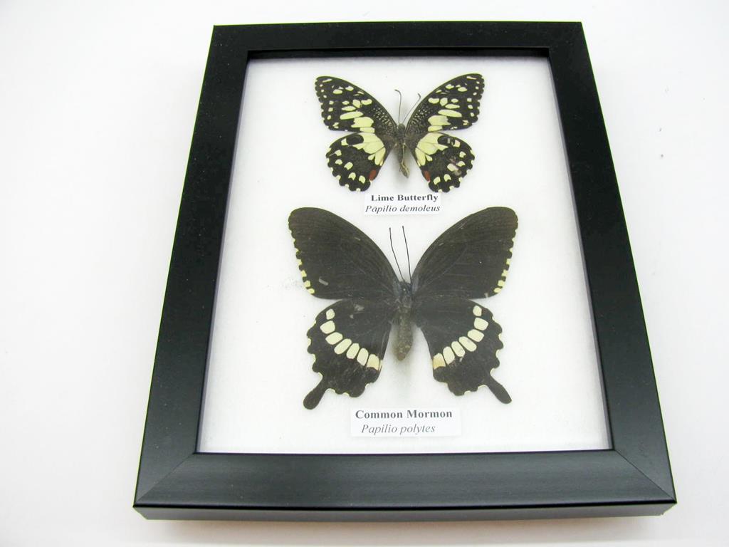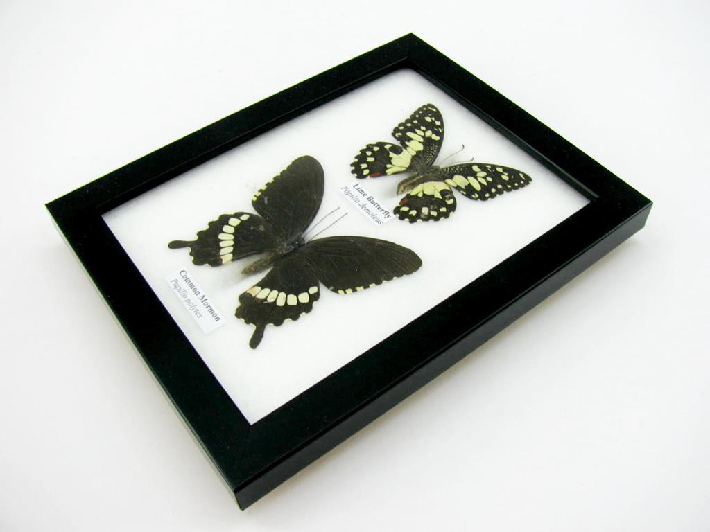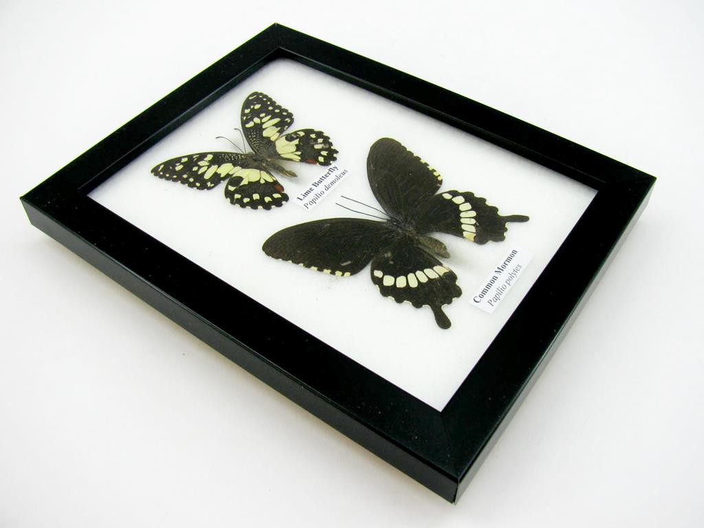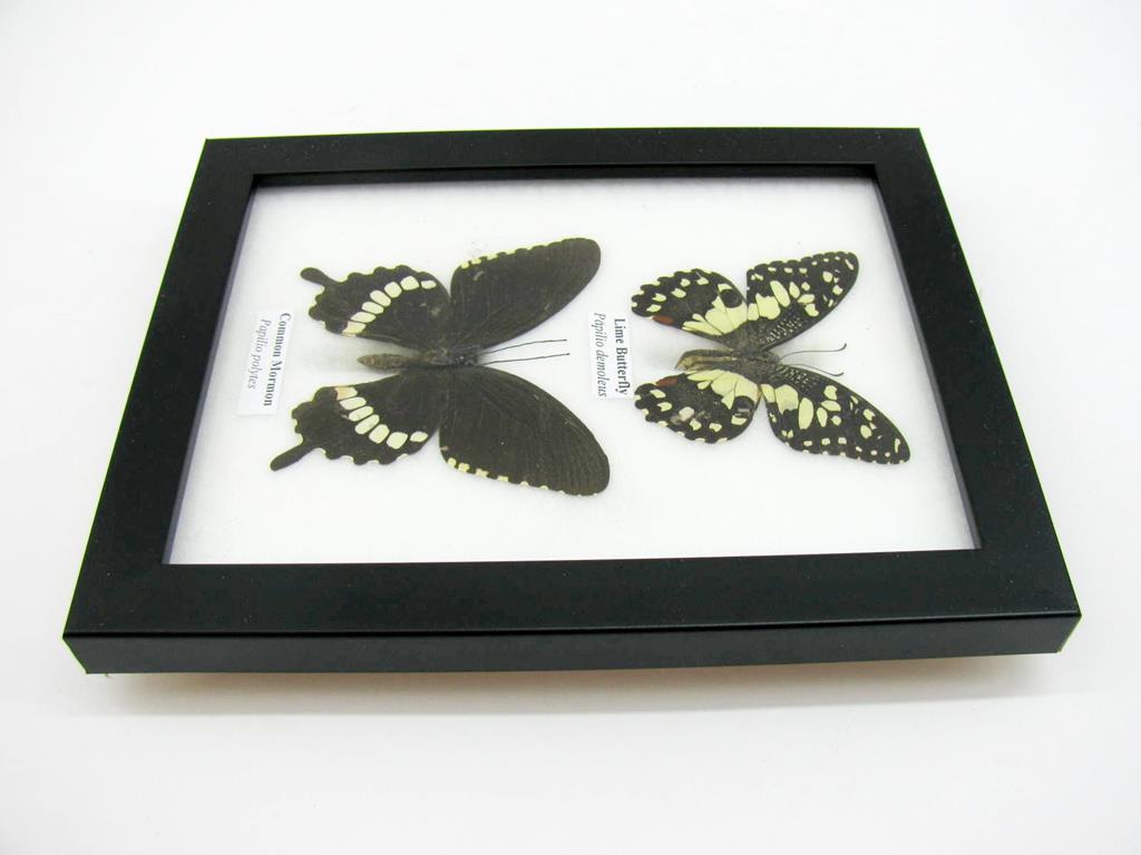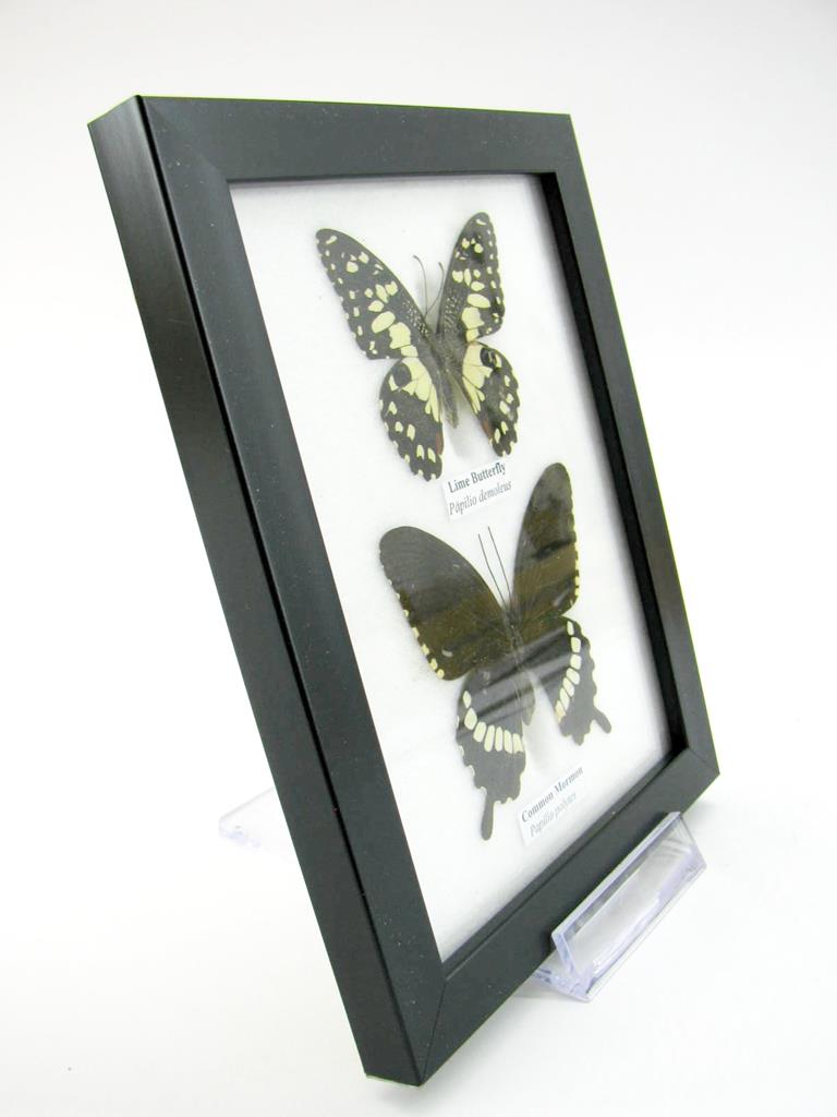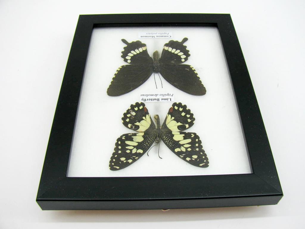 2 wunderschöne echte Schmetterlinge im Rahmen als Wandbild – A-02-h-01