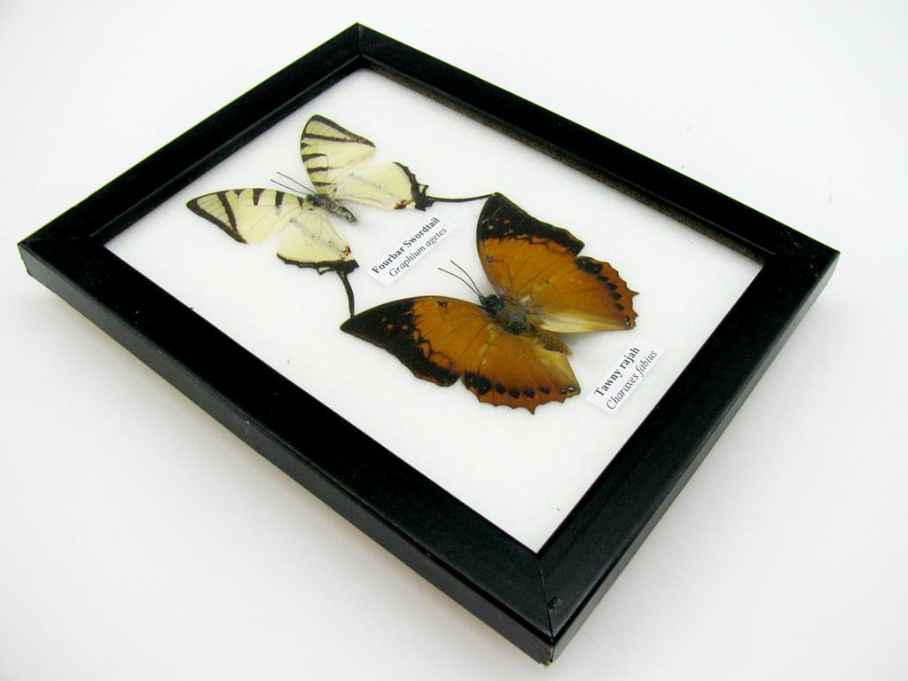 2 wunderschöne echte Schmetterlinge im Rahmen als Wandbild – A-02-h-03