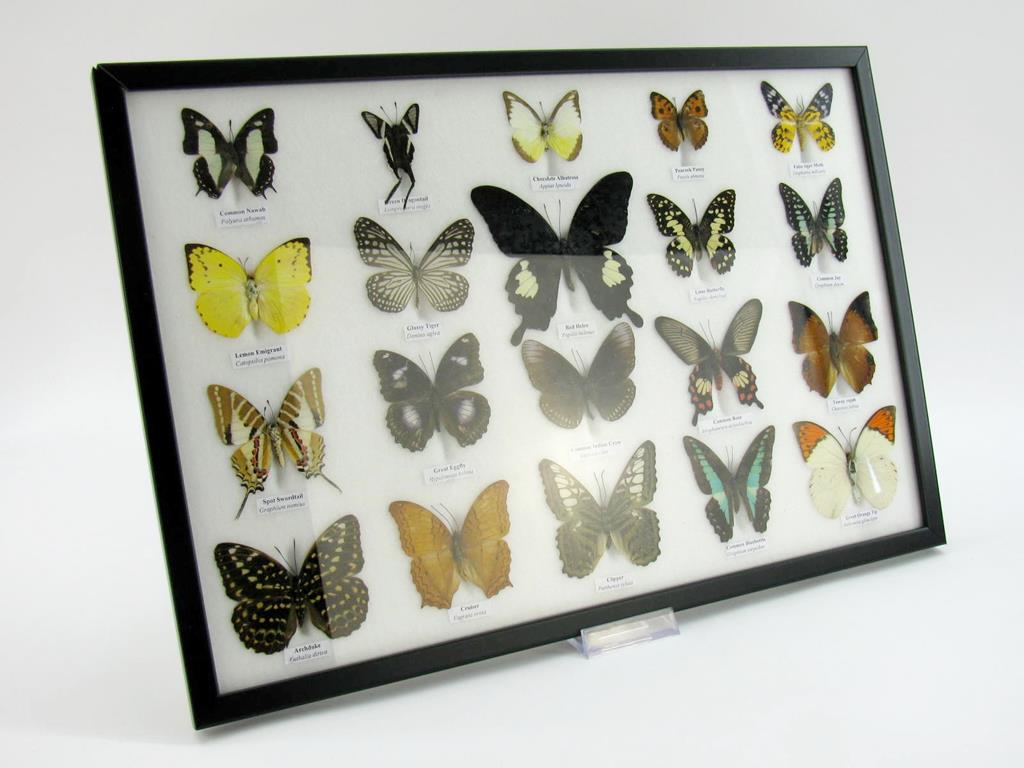 Wunderschöne, echte, präparierte Schmetterlinge als Wandbild im Schaukasten in perfekter Museumsqualität kaufen Sie hier