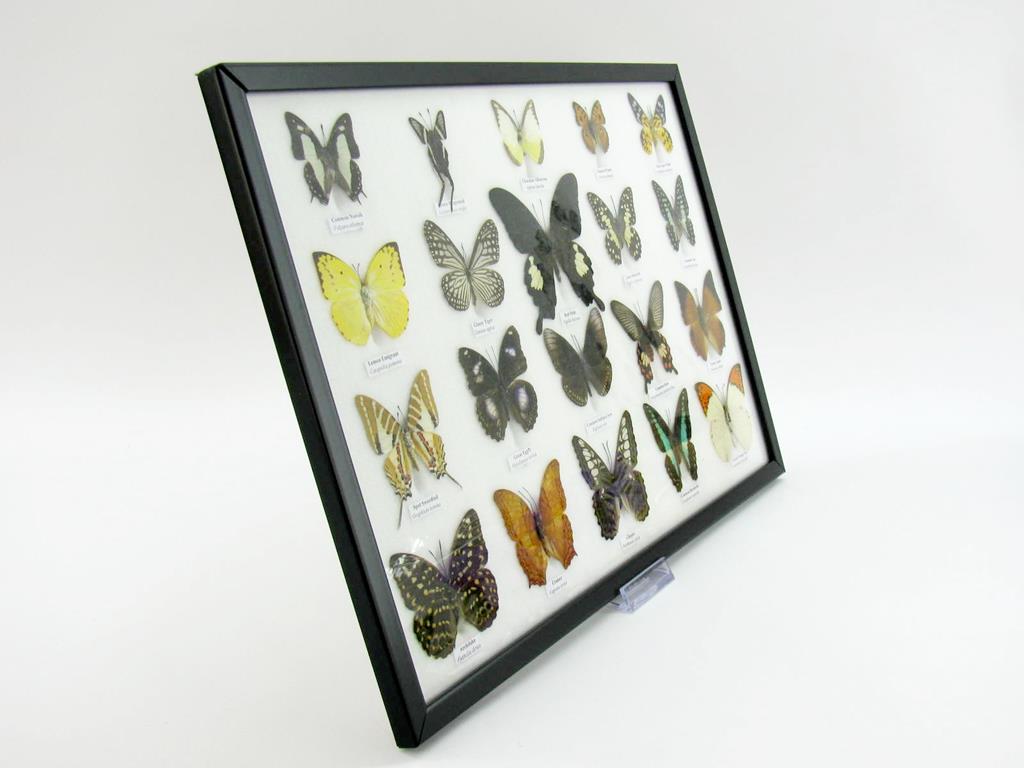20 wunderschöne echte Schmetterlinge im schwarzen Rahmen als Wandbild – A-20-madam-08