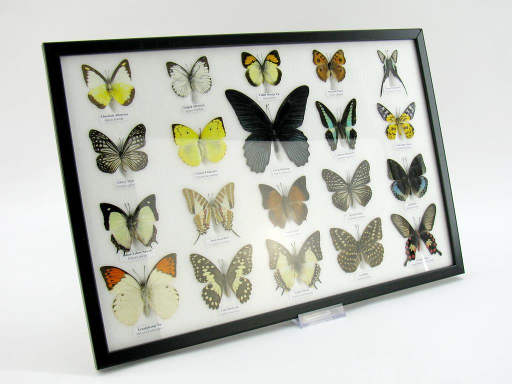 20 echte Schmetterlinge im XXL Bilderrahmen A-20-o-14