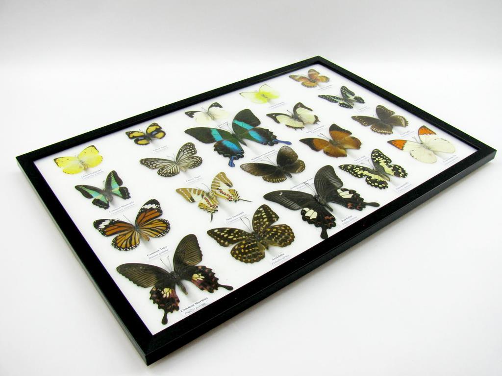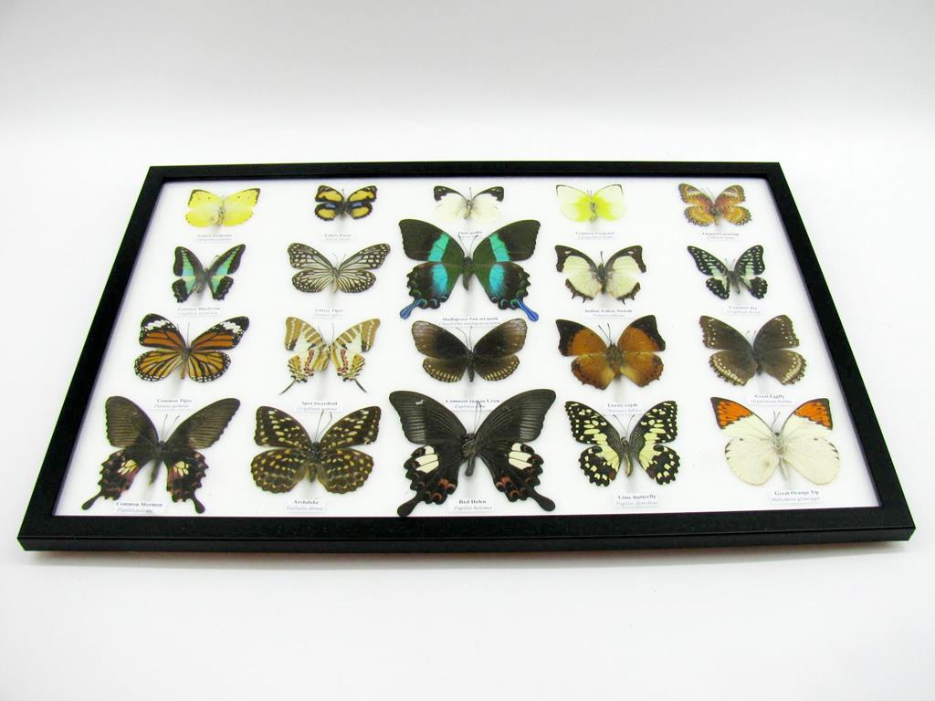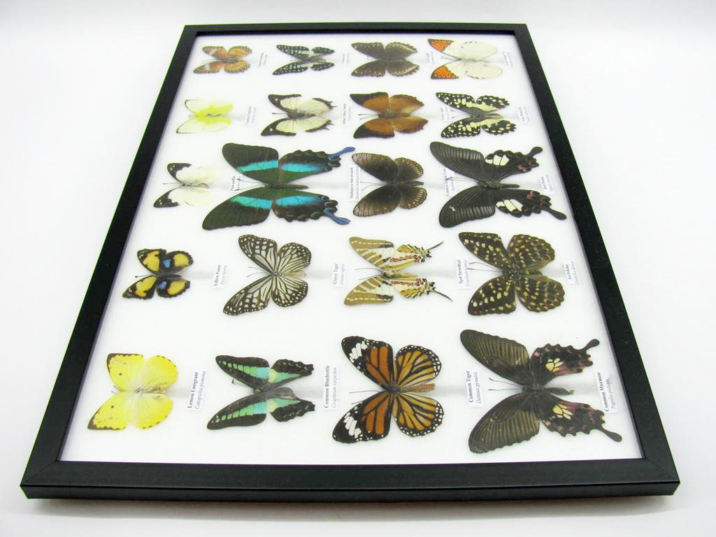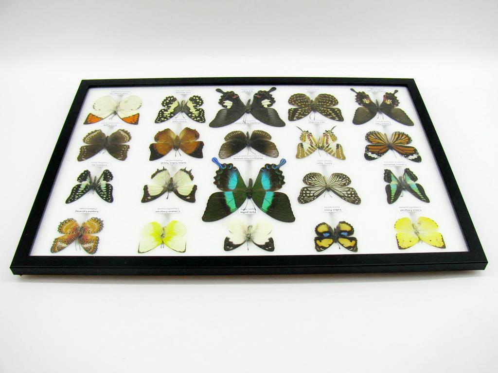 20 wunderschöne echte Schmetterlinge im schwarzen Rahmen als Wandbild – A-20-madam-13