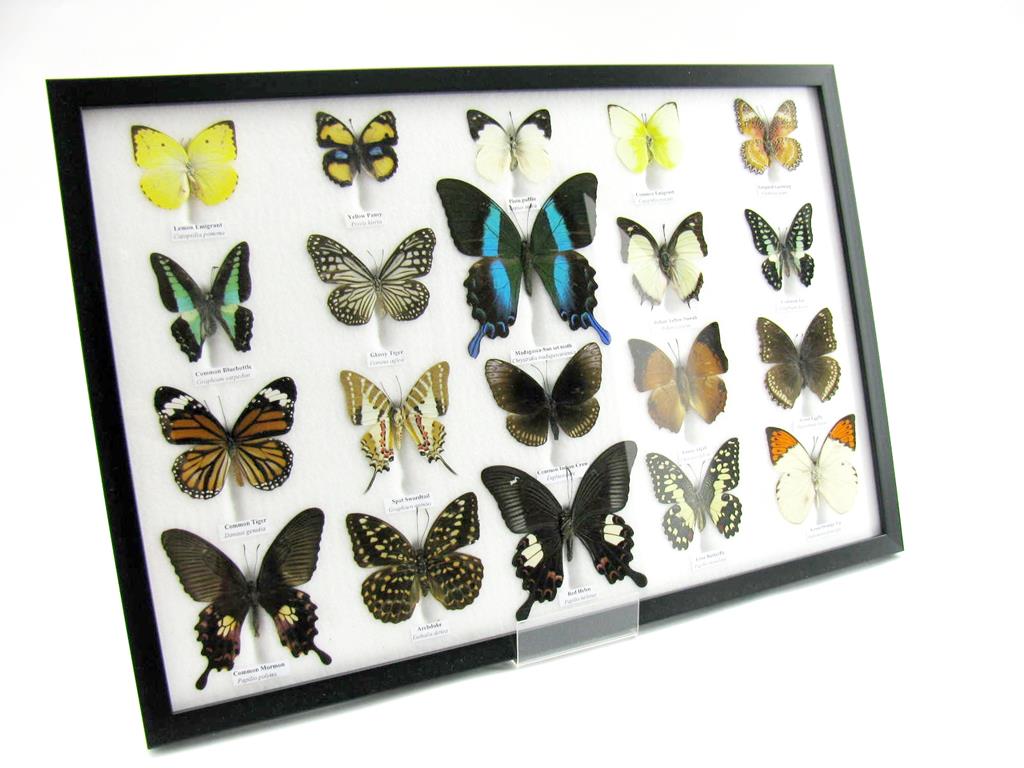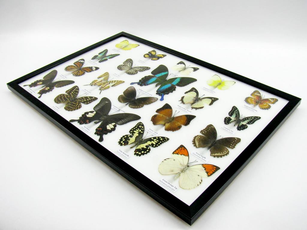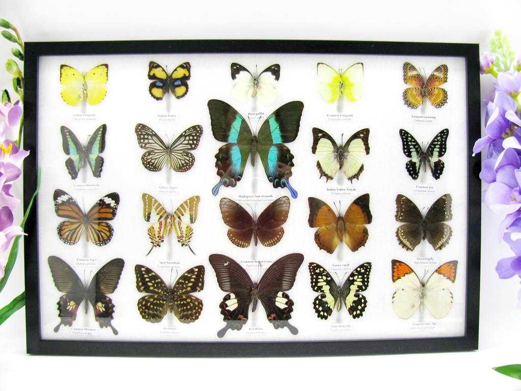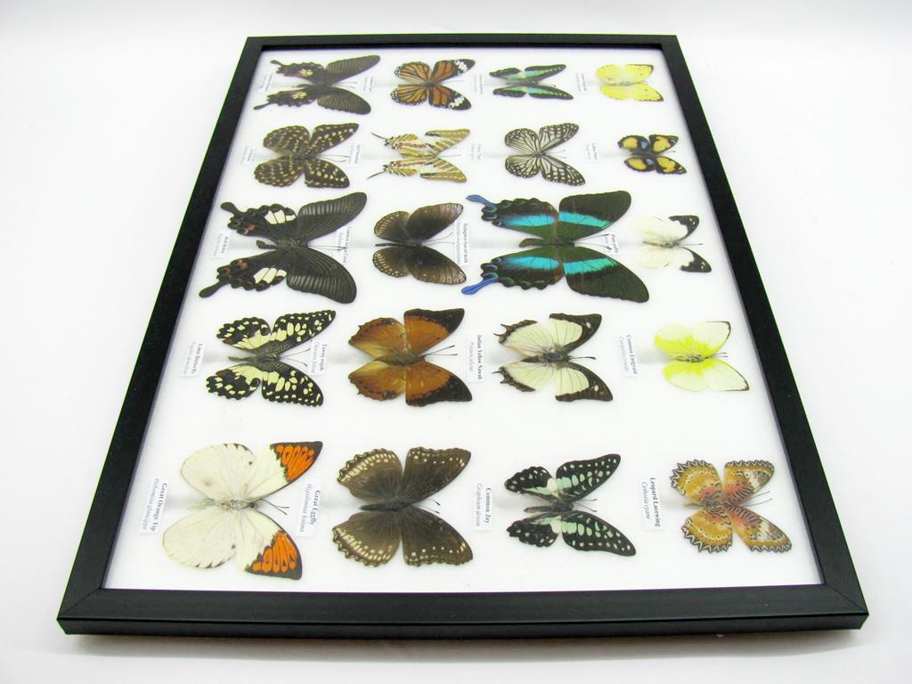 20 wunderschöne echte Schmetterlinge im schwarzen Rahmen als Wandbild – A-20-madam-13