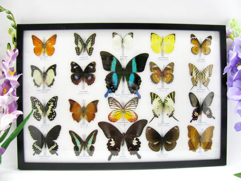 20 wunderschöne echte Schmetterlinge im schwarzen Rahmen als Wandbild – A-01-blumei-05
