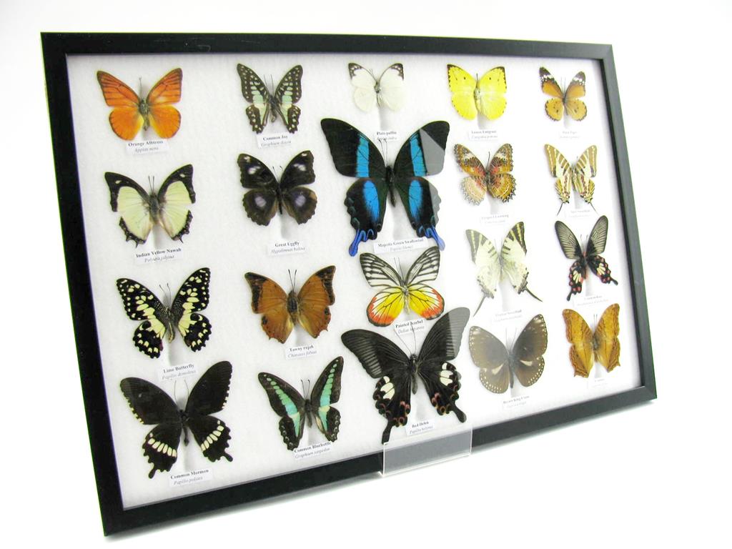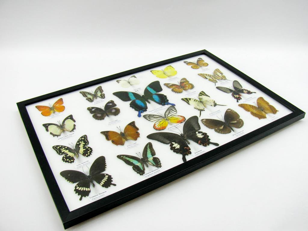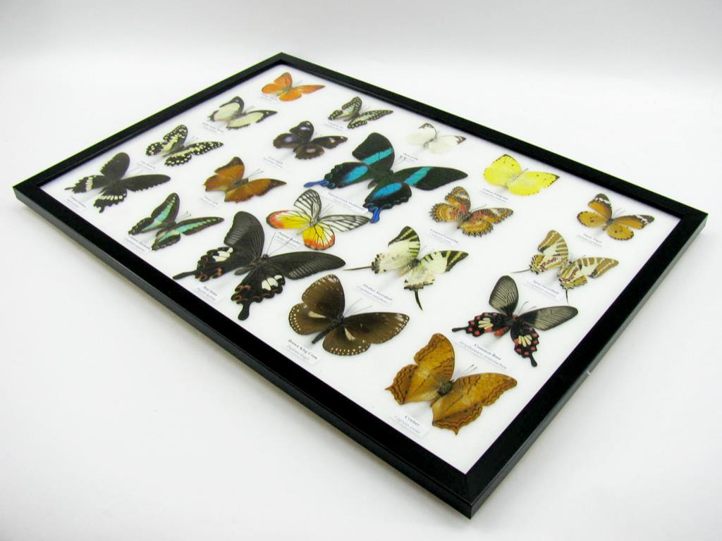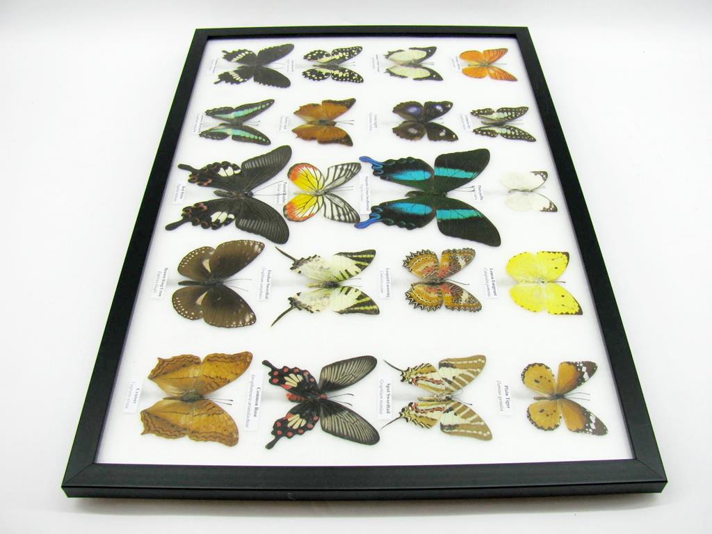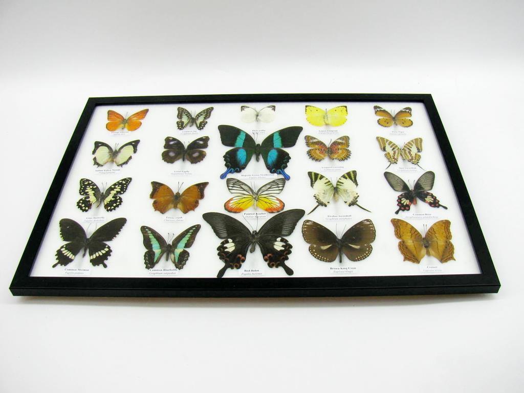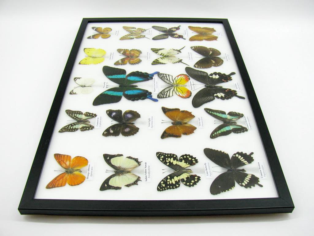 20 wunderschöne echte Schmetterlinge im schwarzen Rahmen als Wandbild – A-20-madam-13