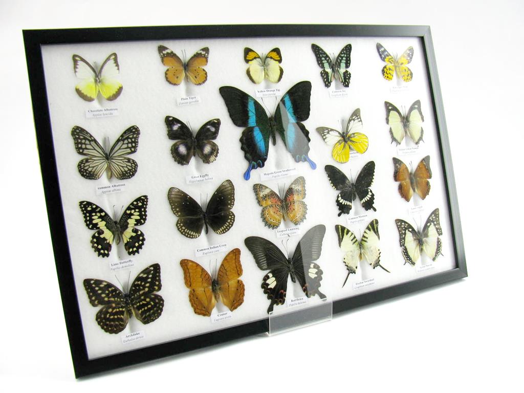 20 wunderschöne echte Schmetterlinge im schwarzen Rahmen als Wandbild – A-01-blumei-12
