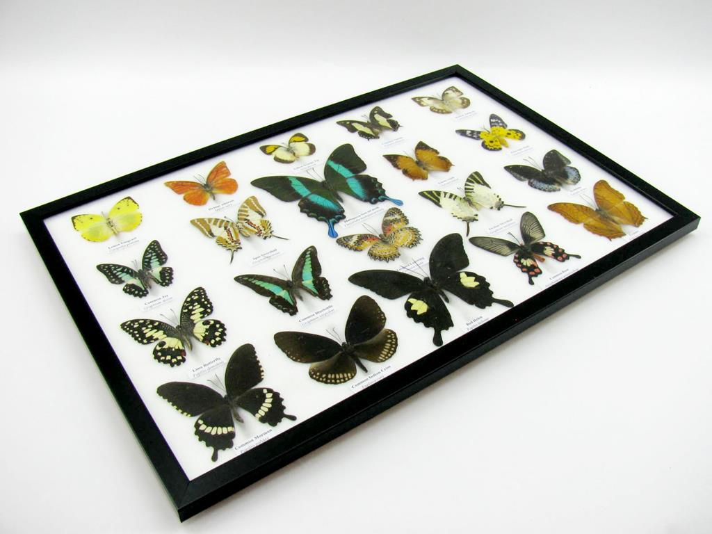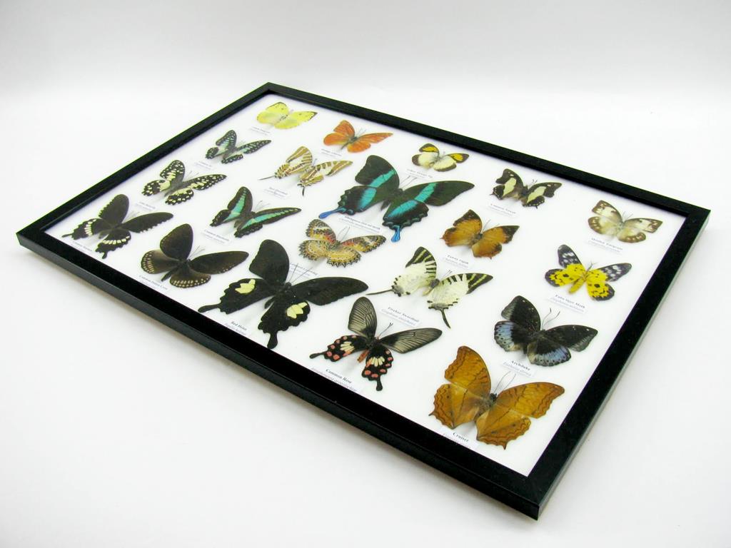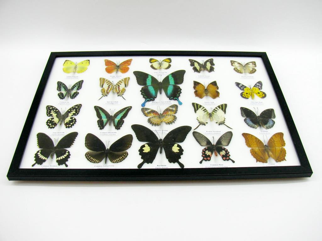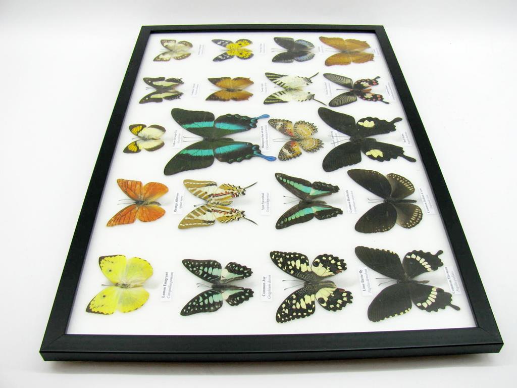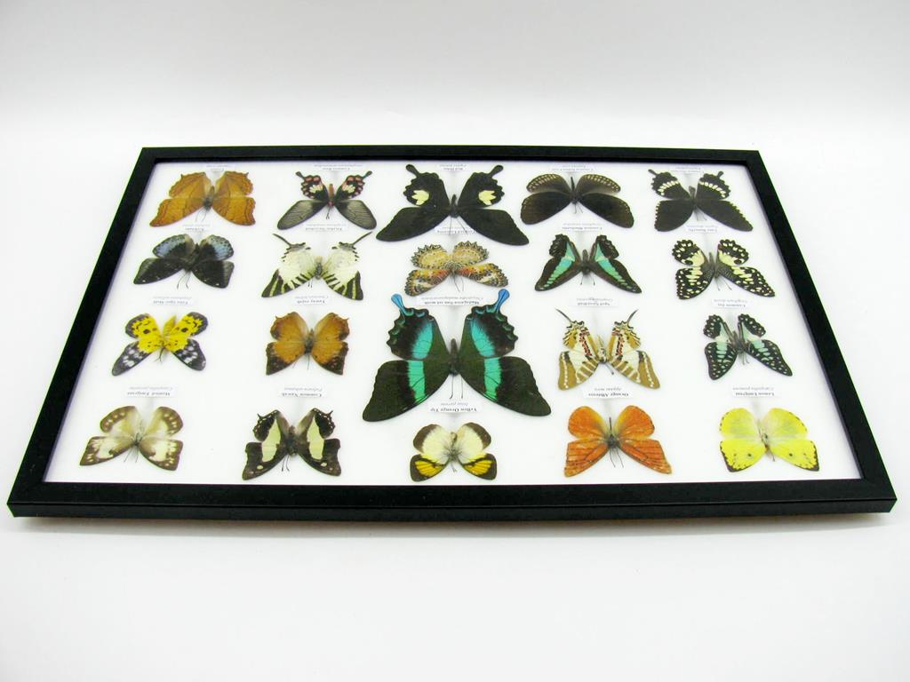 20 wunderschöne echte Schmetterlinge im schwarzen Rahmen als Wandbild – A-20-madam-13