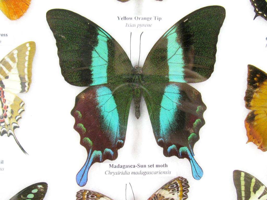 Wunderschöne, echte, präparierte Schmetterlinge als Wandbild im Schaukasten in perfekter Museumsqualität kaufen Sie hier