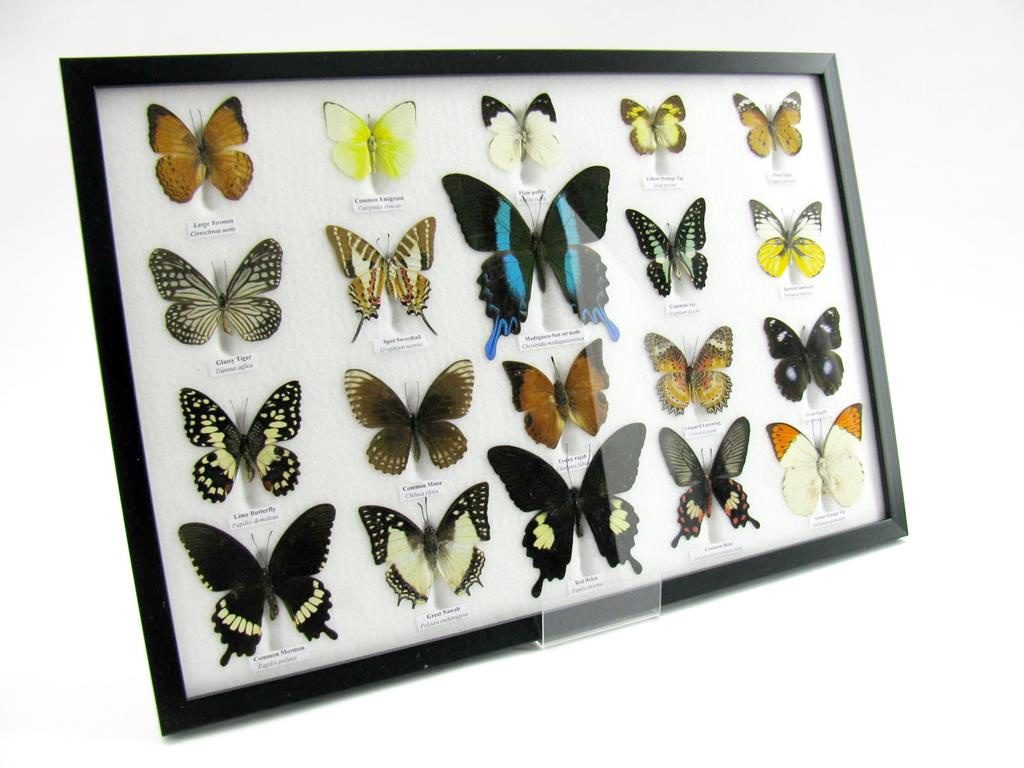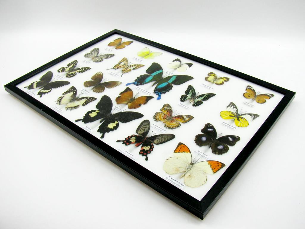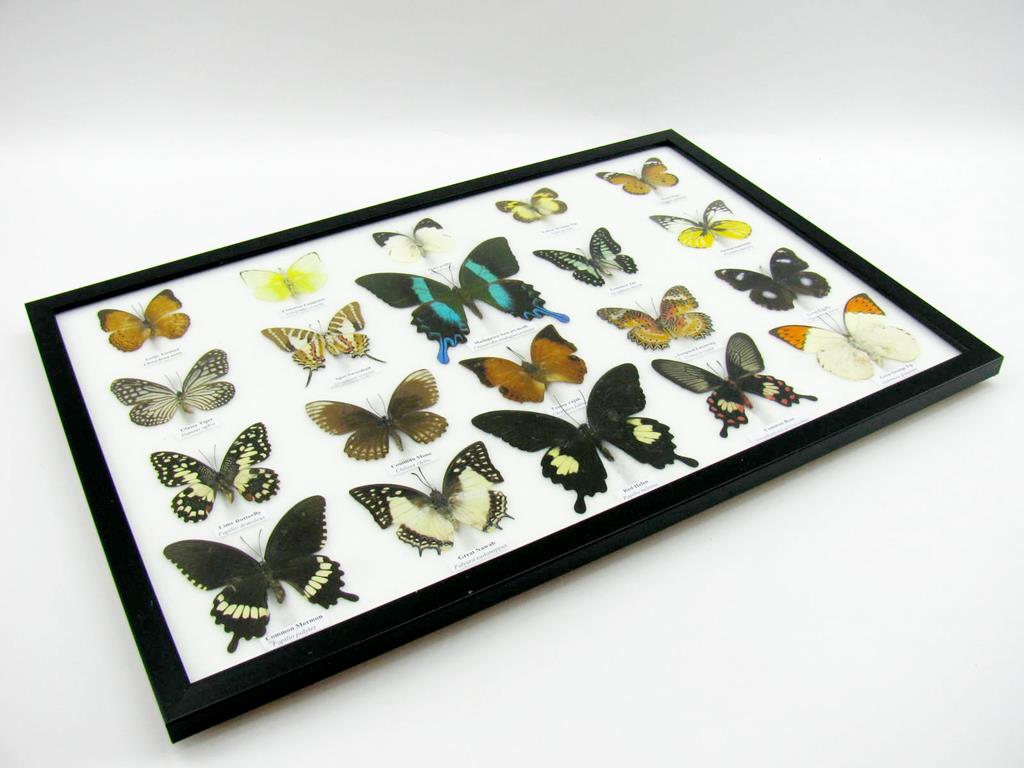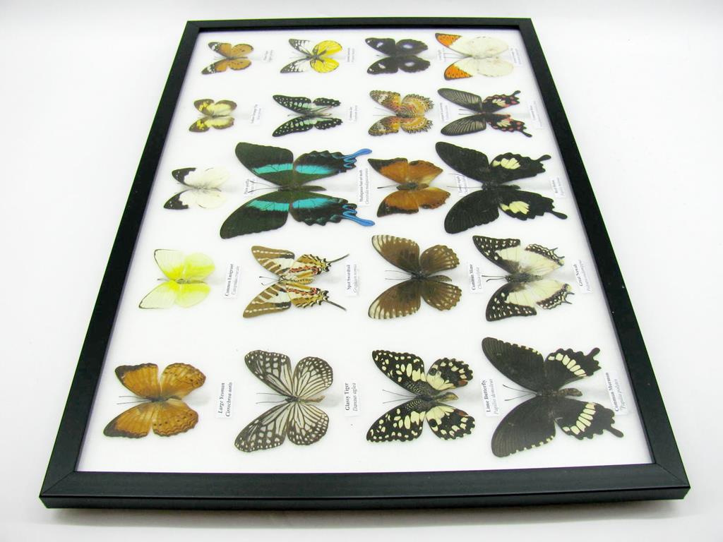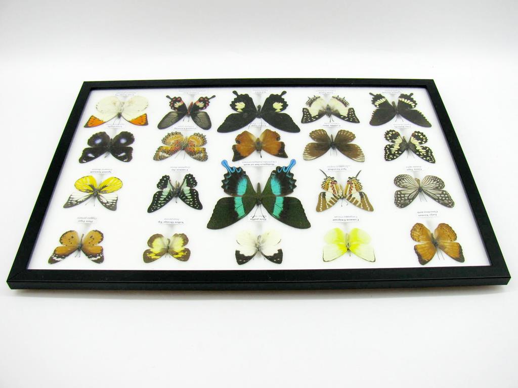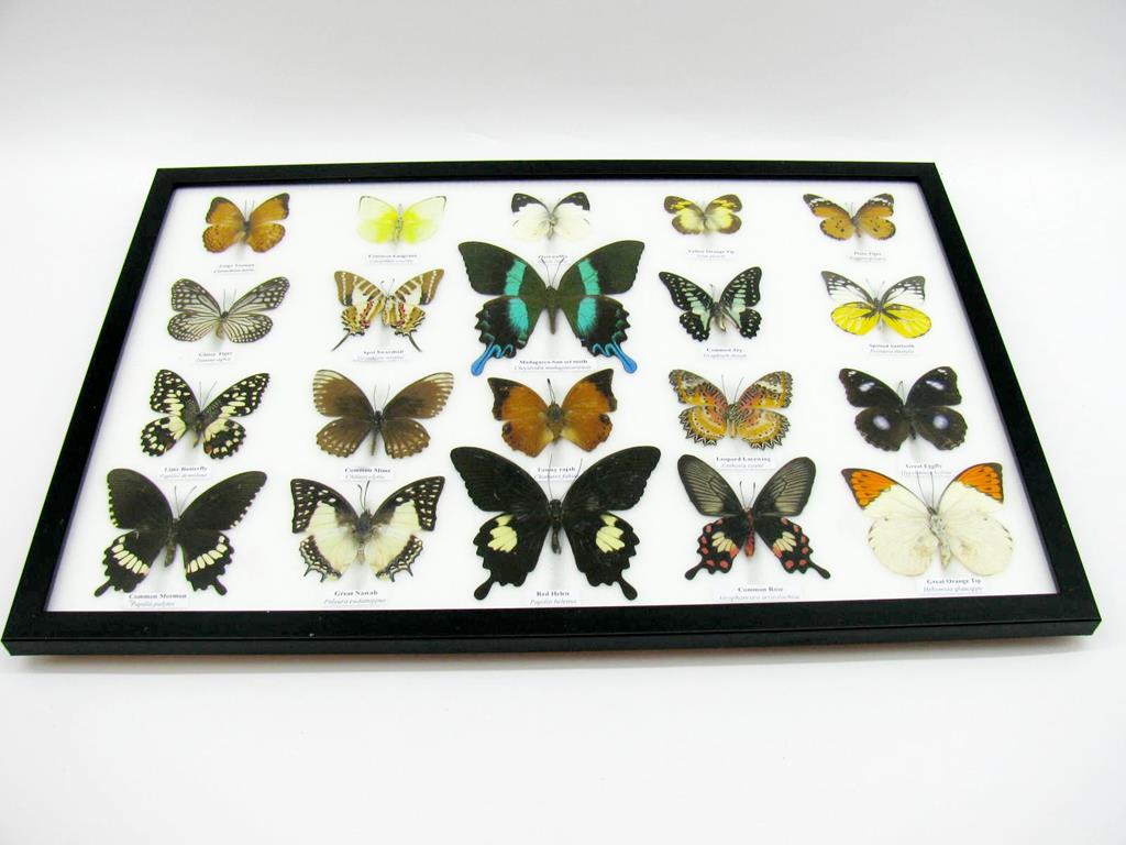 20 wunderschöne echte Schmetterlinge im schwarzen Rahmen als Wandbild – A-20-madam-01