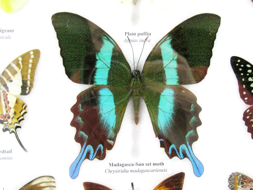 Wunderschöne, echte, präparierte Schmetterlinge als Wandbild im Schaukasten in perfekter Museumsqualität kaufen Sie hier