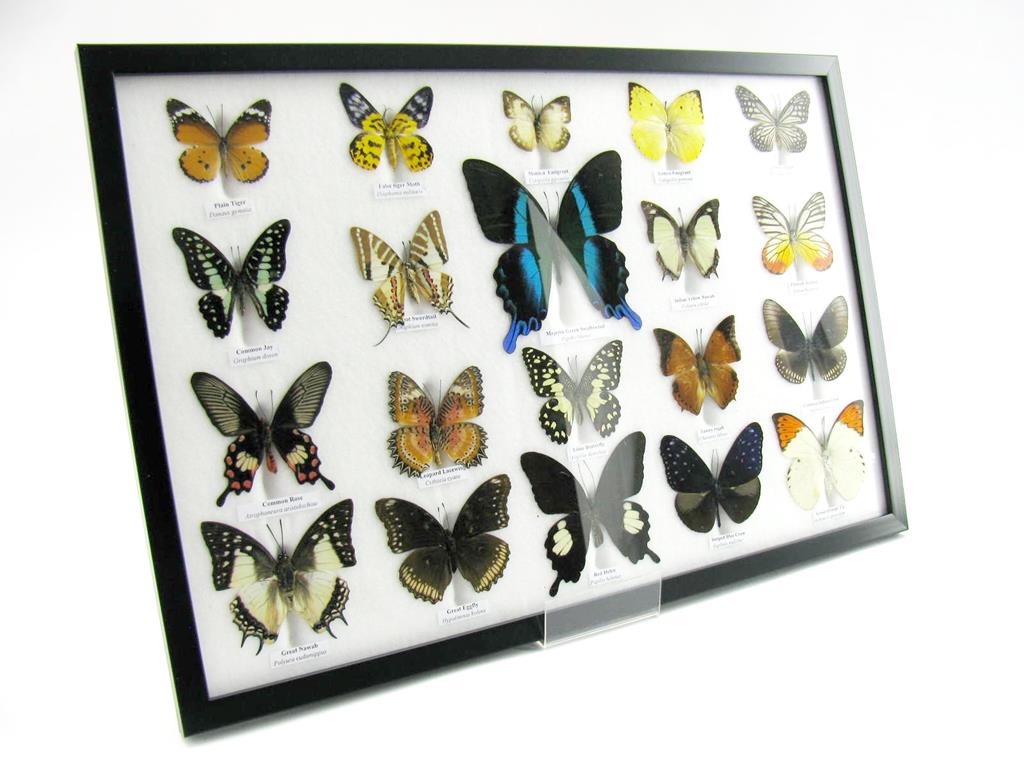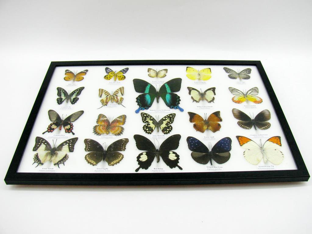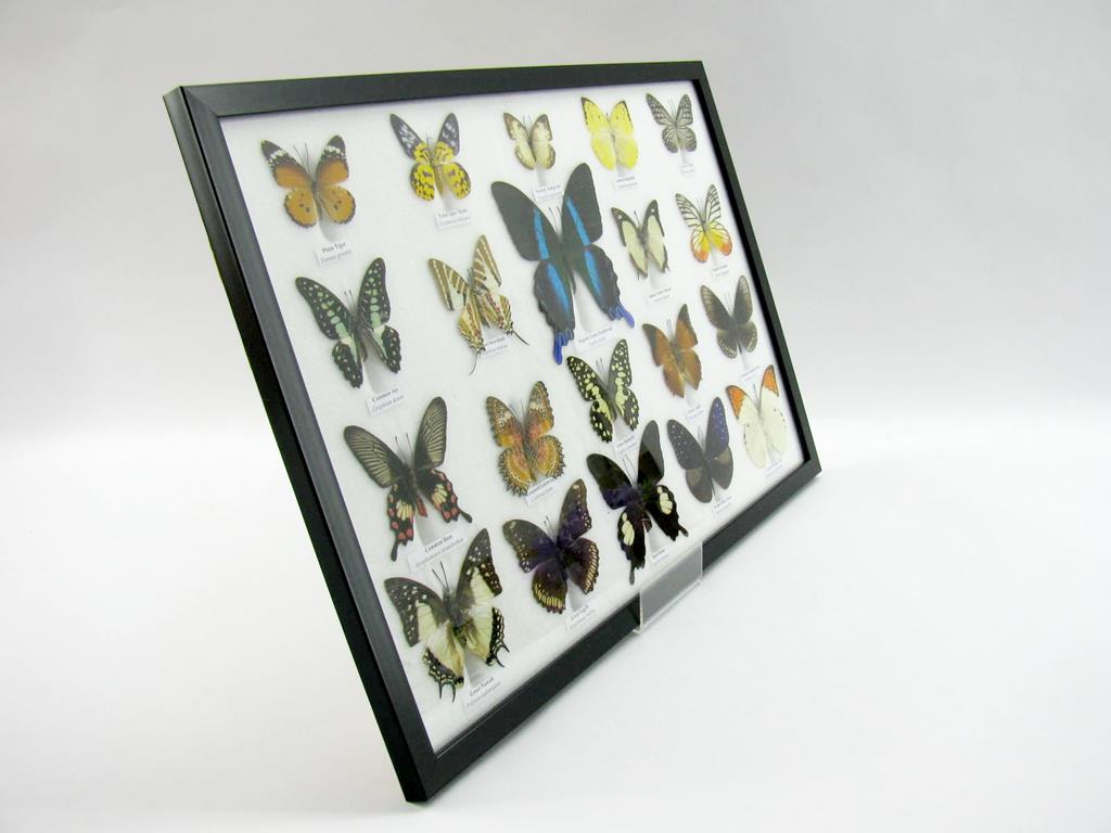 20 wunderschöne echte Schmetterlinge im schwarzen Rahmen als Wandbild – A-20-madam-02