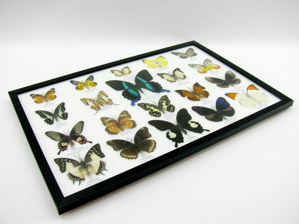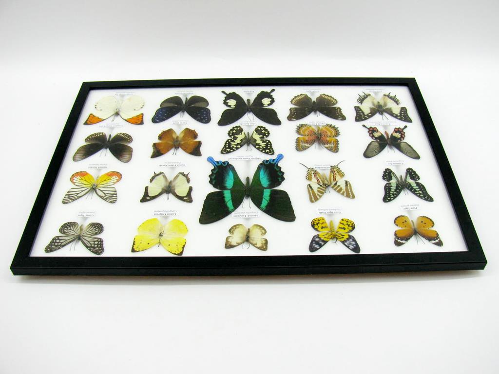 20 echte Schmetterlinge im XXL Bilderrahmen A-20-o-14