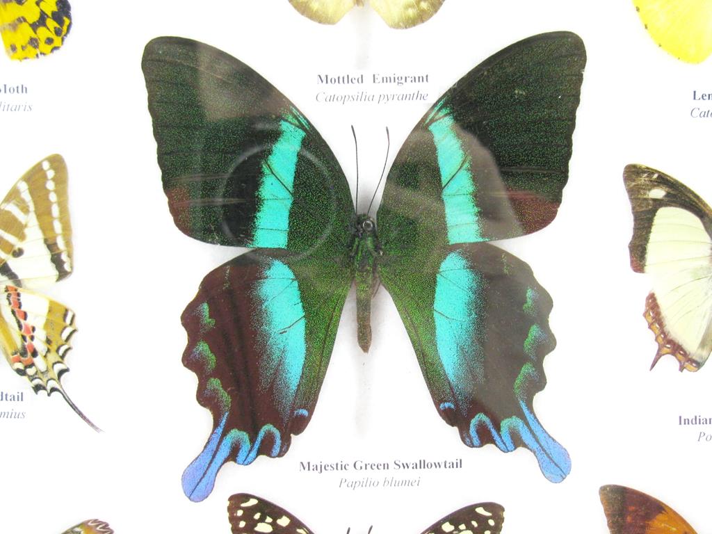 Wunderschöne, echte, präparierte Schmetterlinge als Wandbild im Schaukasten in perfekter Museumsqualität kaufen Sie hier