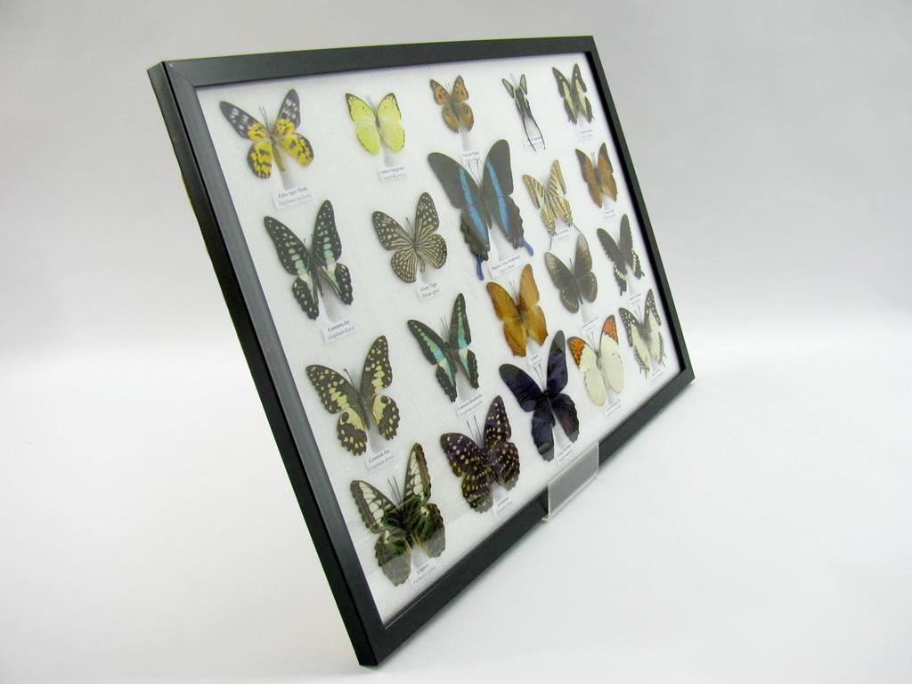 Wunderschöne, echte, präparierte Schmetterlinge als Wandbild im Schaukasten in perfekter Museumsqualität kaufen Sie hier
