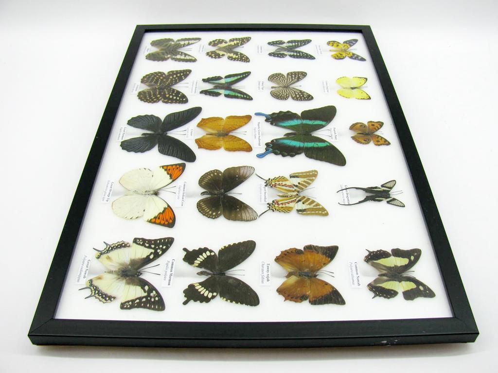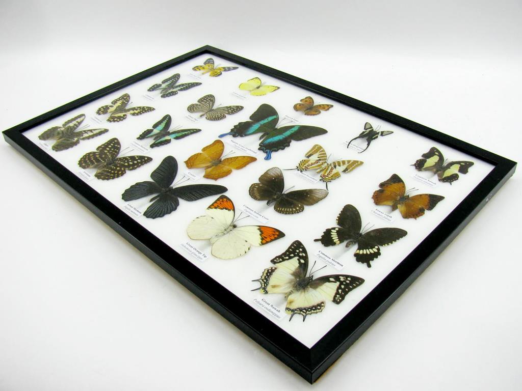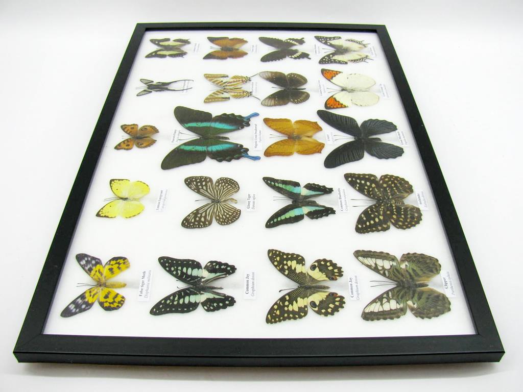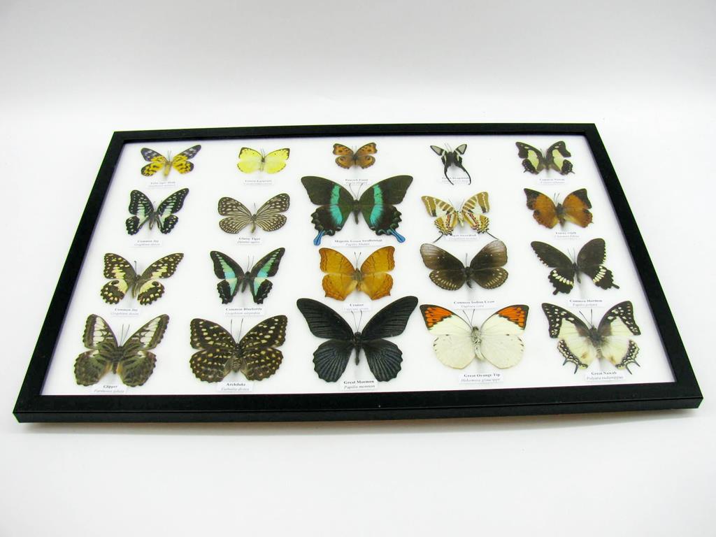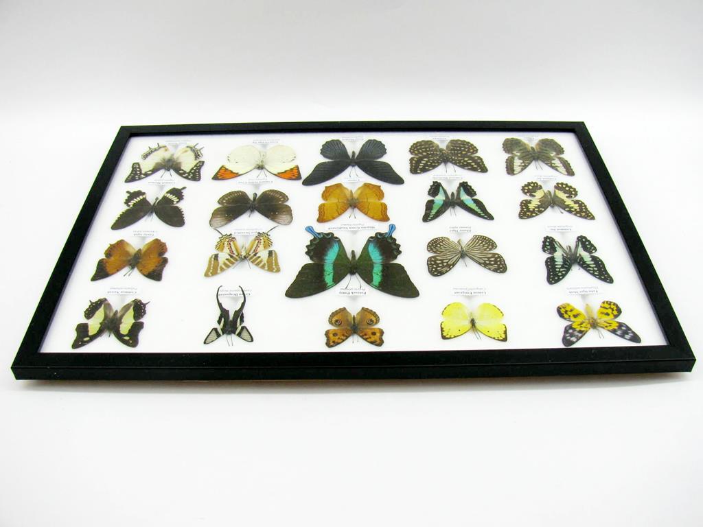 20 wunderschöne echte Schmetterlinge im schwarzen Rahmen als Wandbild – A-20-madam-08