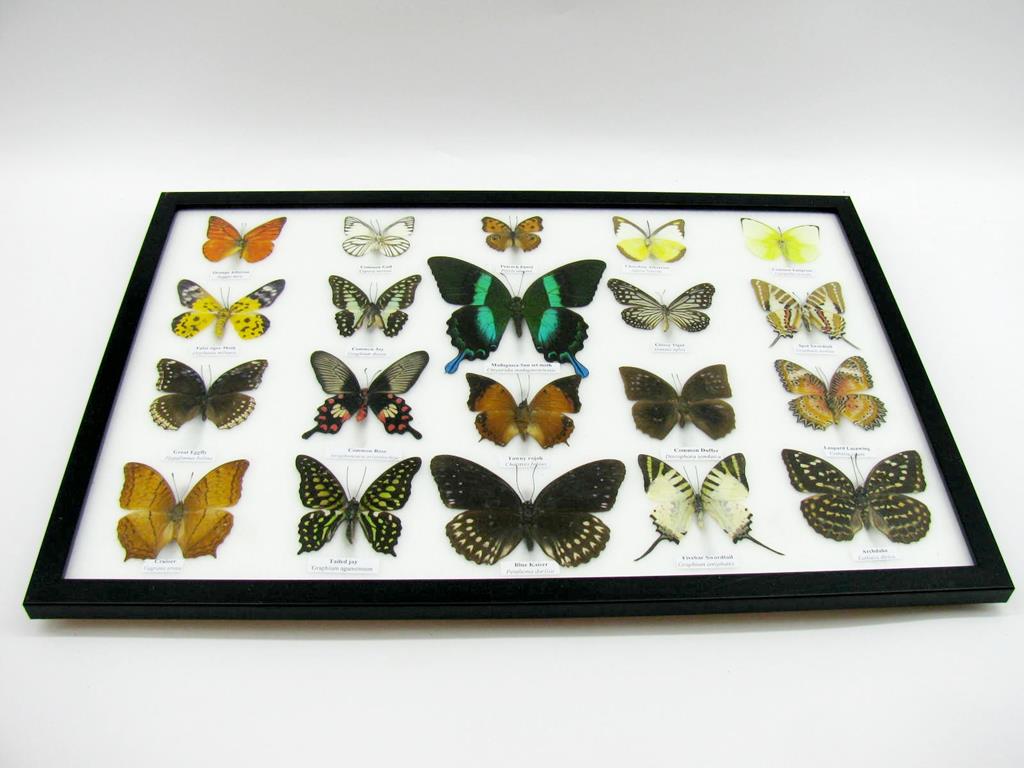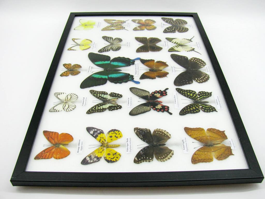 20 wunderschöne echte Schmetterlinge im schwarzen Rahmen als Wandbild – A-20-madam-05
