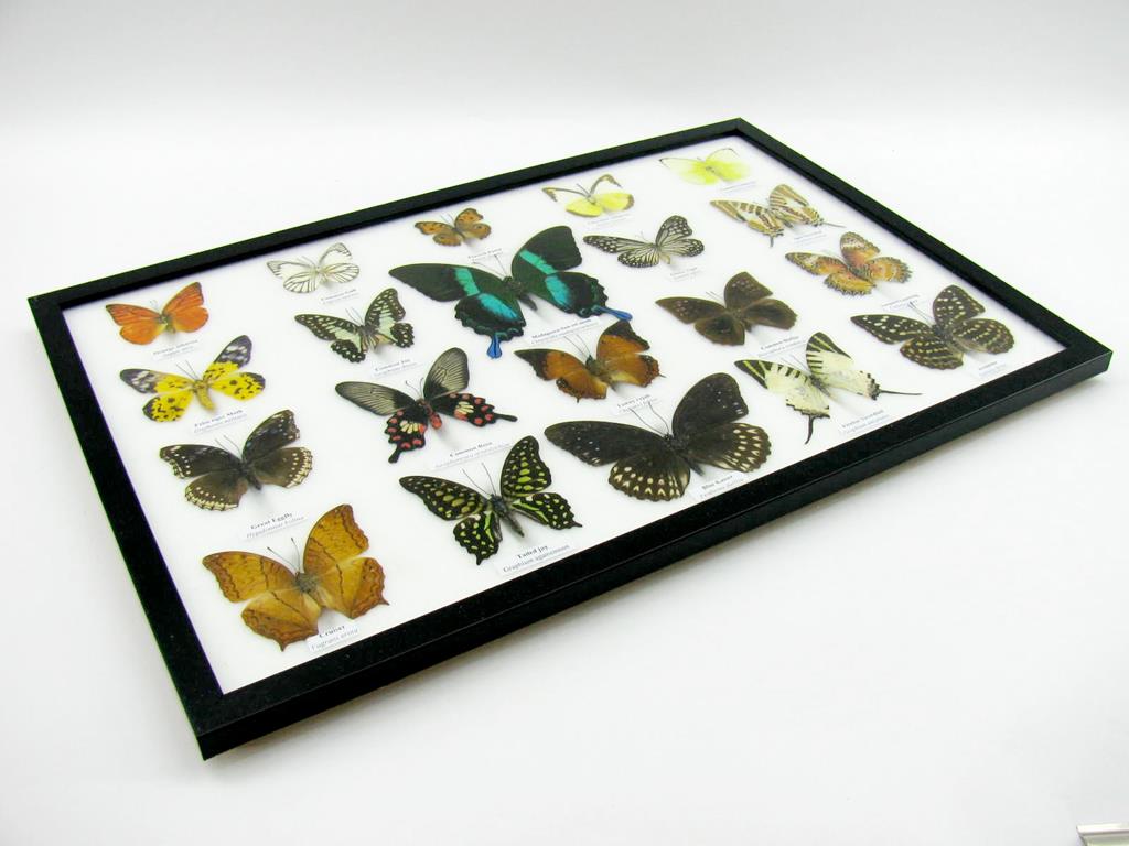 20 wunderschöne echte Schmetterlinge im schwarzen Rahmen als Wandbild – A-20-madam-02