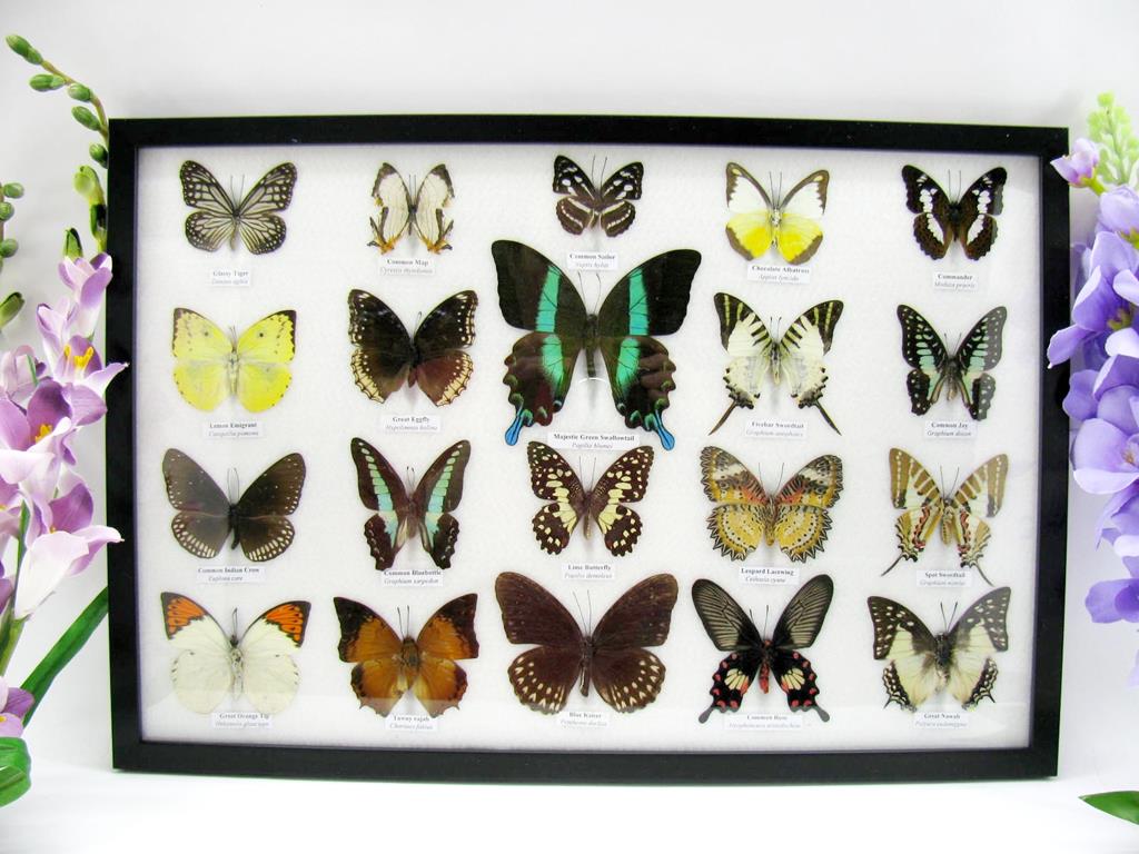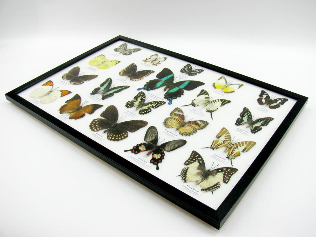20 wunderschöne echte Schmetterlinge im schwarzen Rahmen als Wandbild – A-20-madam-05