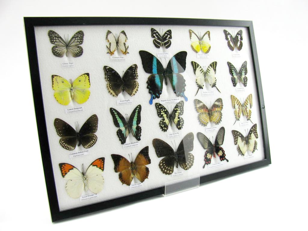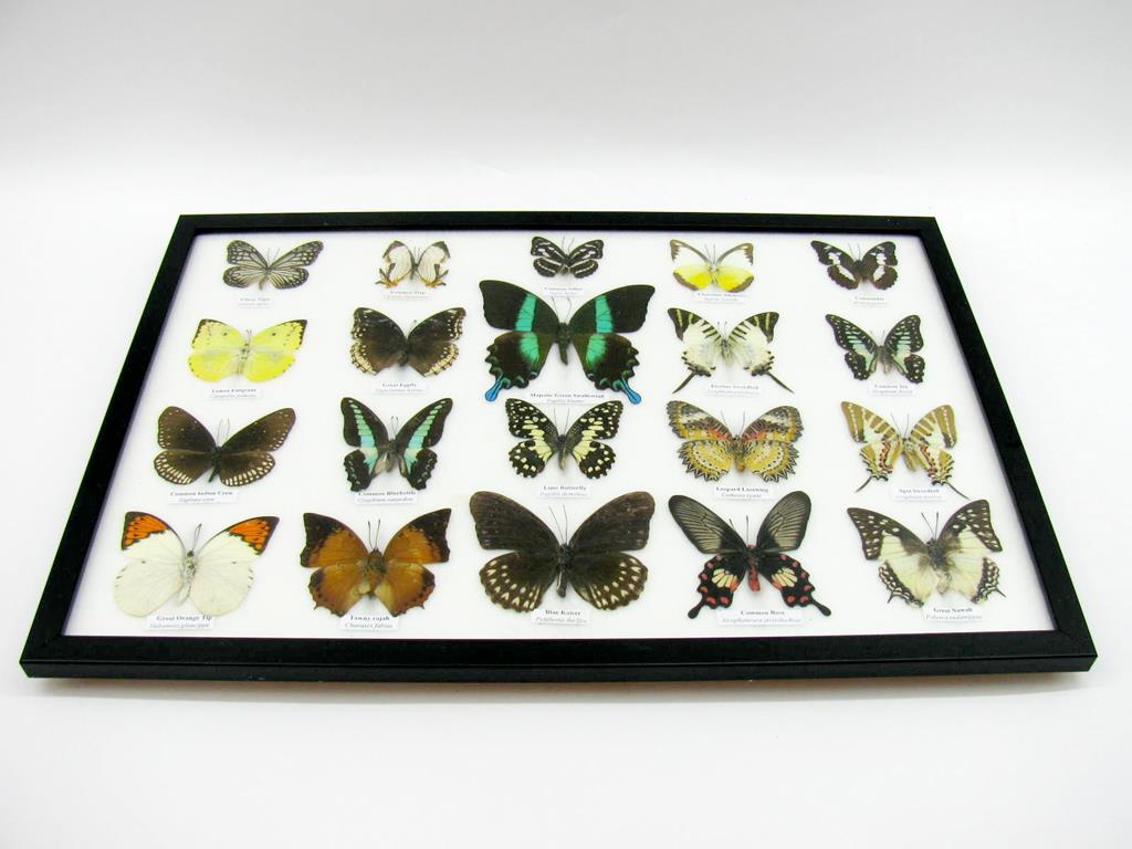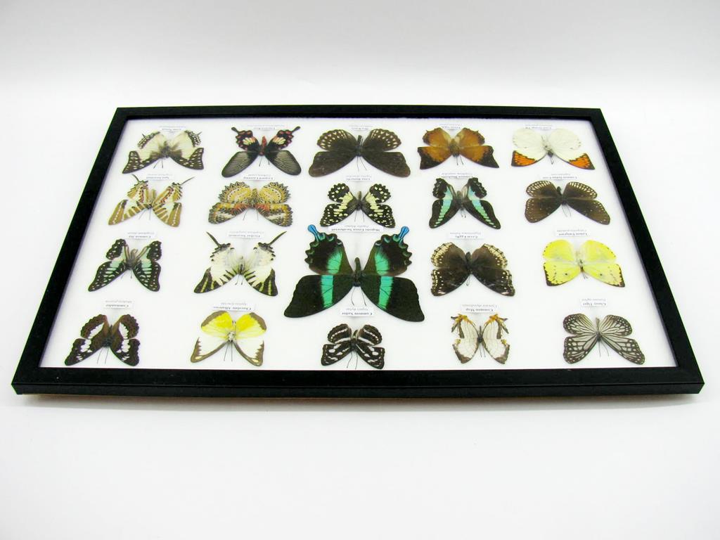 20 wunderschöne echte Schmetterlinge im schwarzen Rahmen als Wandbild – A-20-madam-09