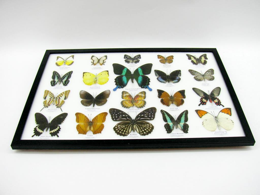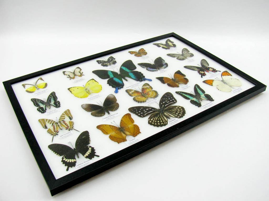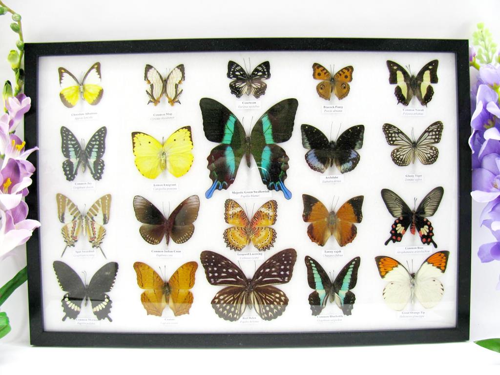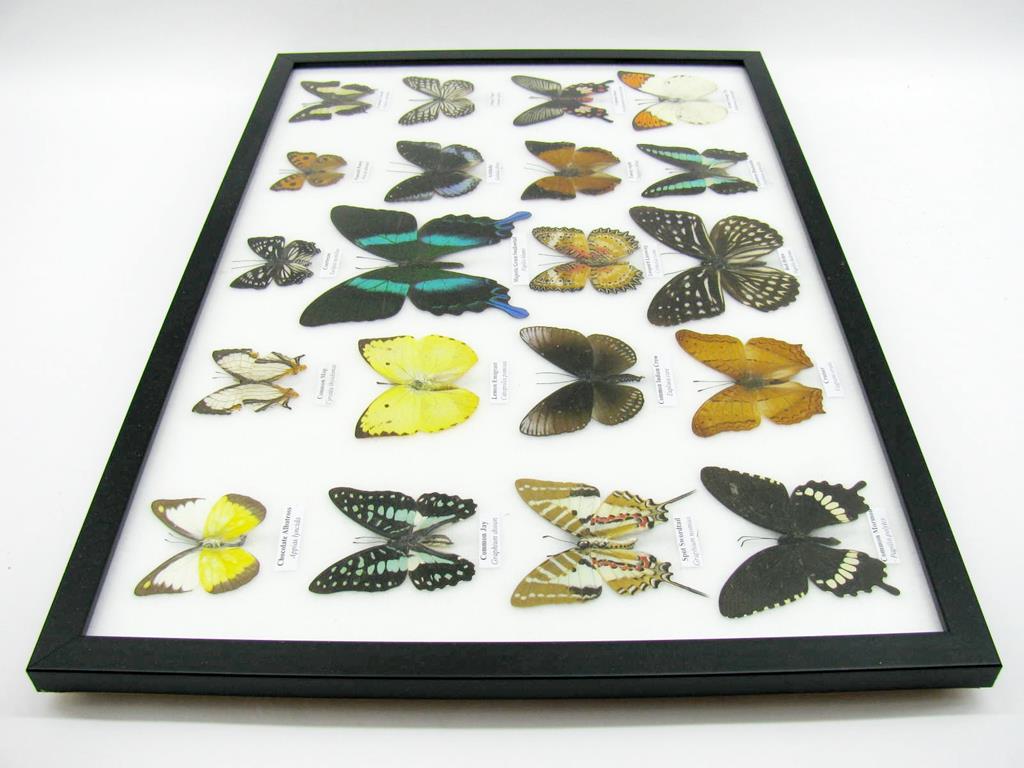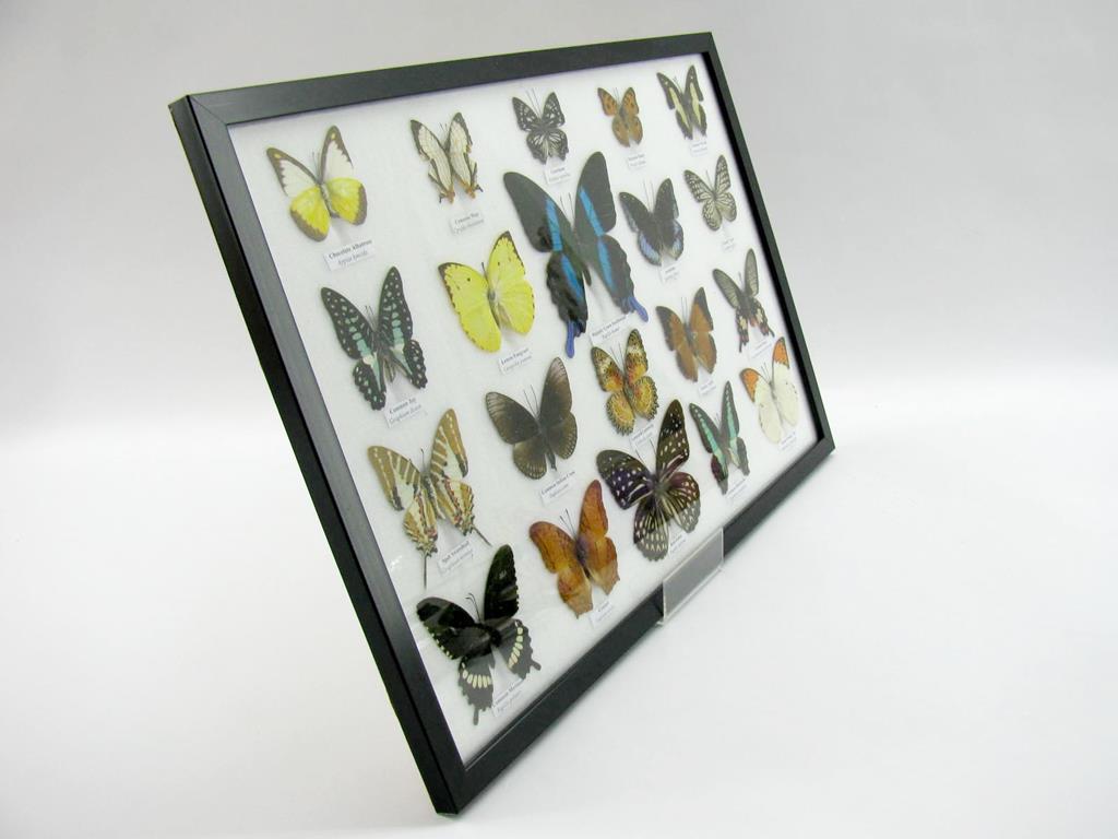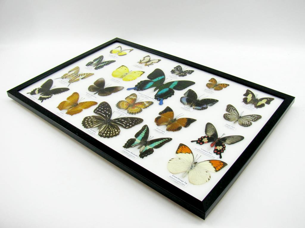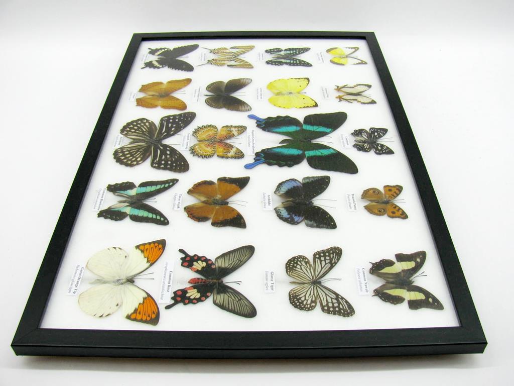 20 wunderschöne echte Schmetterlinge im schwarzen Rahmen als Wandbild – A-20-madam-13